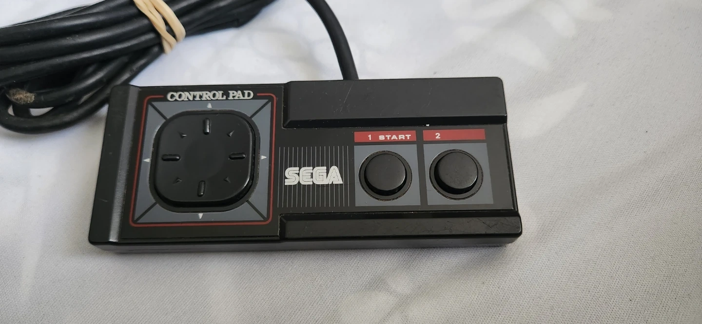 This is a Sega Control Pad, model number 3020. It features a directional pad and two action buttons labeled 1 and 2. This controller is for gaming.
