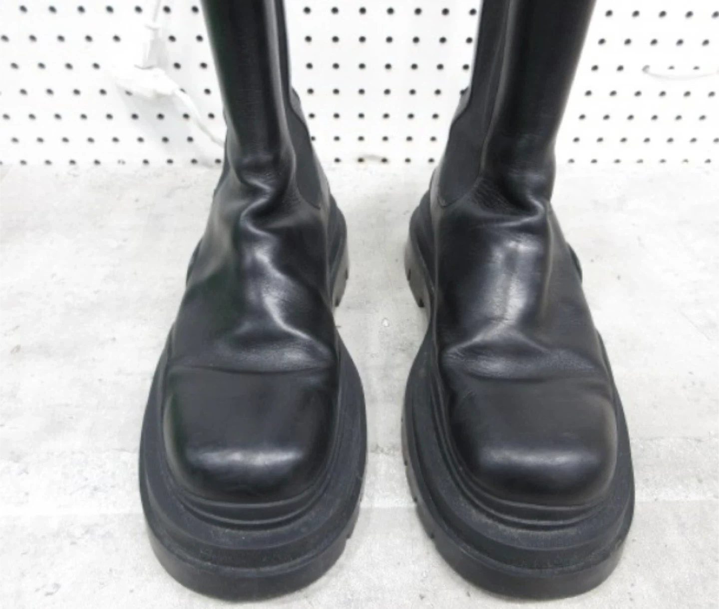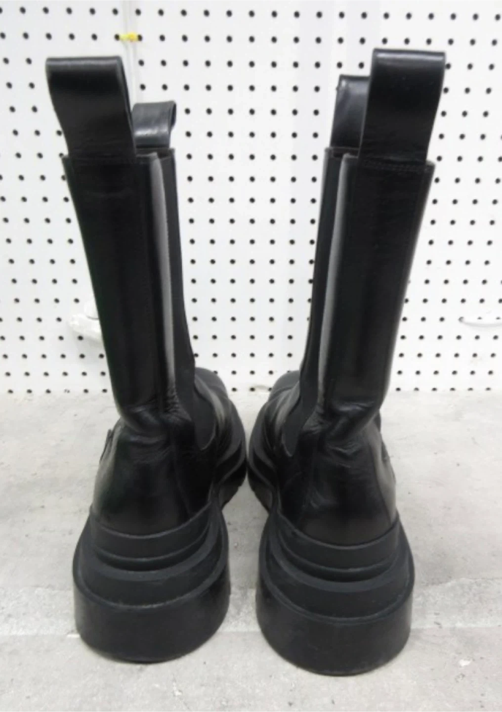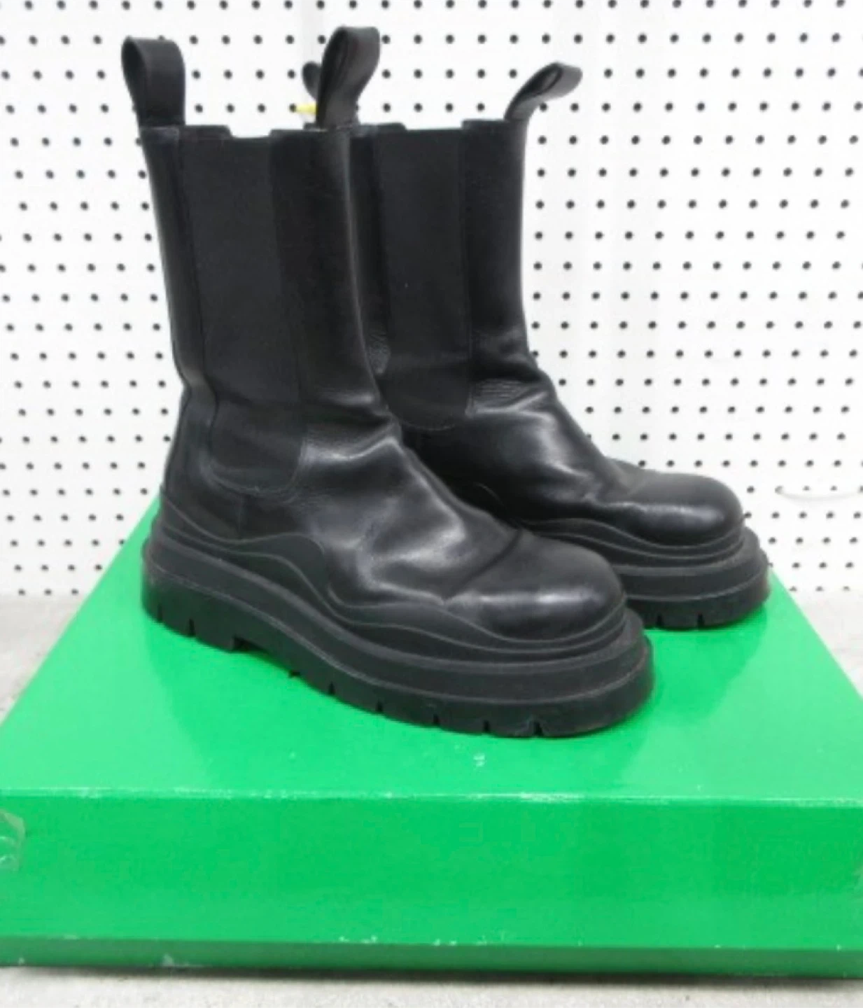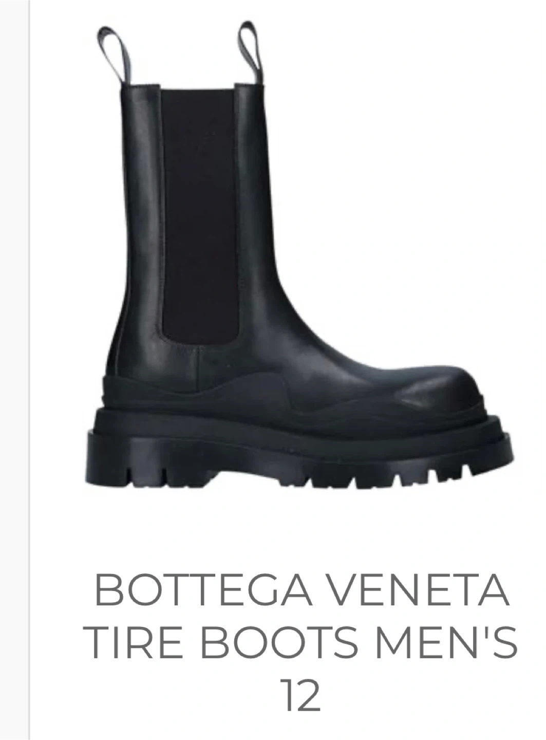 Bottega Veneta Tire Boots for men in black. These are a men's size 12. They feature a durable rubber sole and elastic side panels. Brand new in box. Retails for $1450 USD. Over $2000 CAN