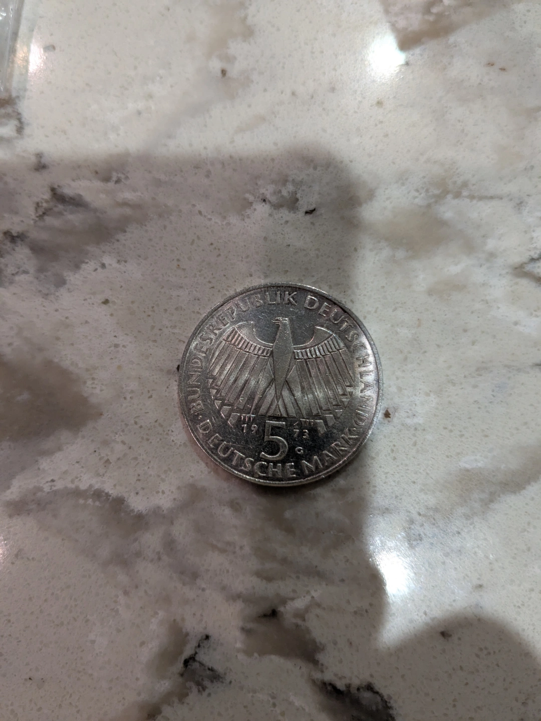 Vintage 135th anniversary collectible Silver coins 5 Deutsche Mark coin 1973- G Franfurt Parliament Building.1973 G BU silver coin (11.25 grams) 0.625% silver.