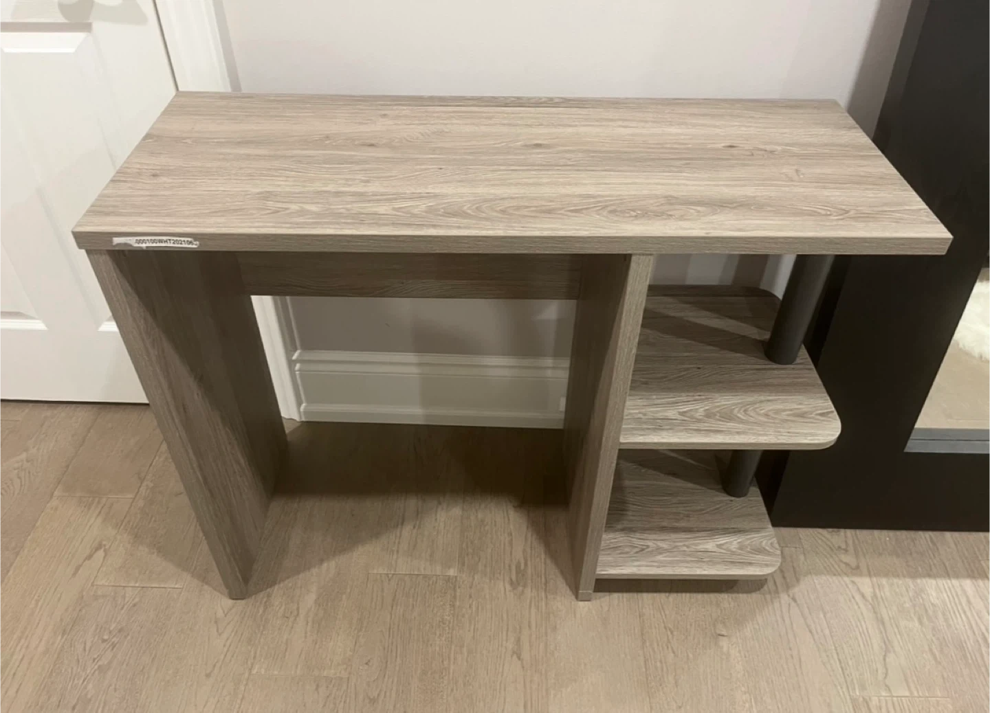 Selling a modern desk with built-in shelves. It's in great shape and perfect for adding a bit of storage and style to any room. The wood-look finish is neutral and goes with everything.