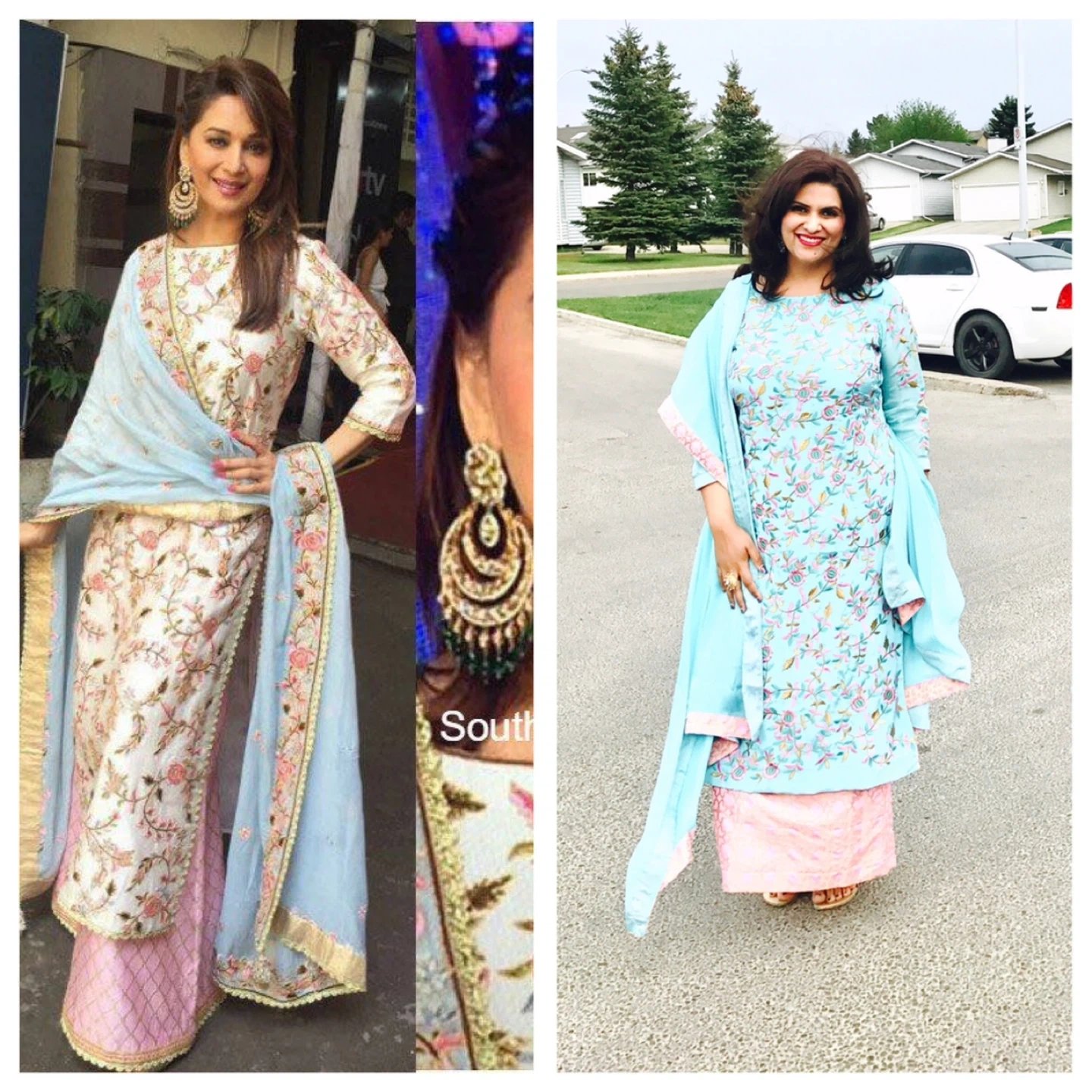Beautifully embroidered traditional Indian fashion outfit .Long kameez with a royal silk skirt & matching dupatta. This set features intricate floral embroidery on a light blue base, accented with pink and gold. The outfit includes the kameez, salwar, and dupatta.