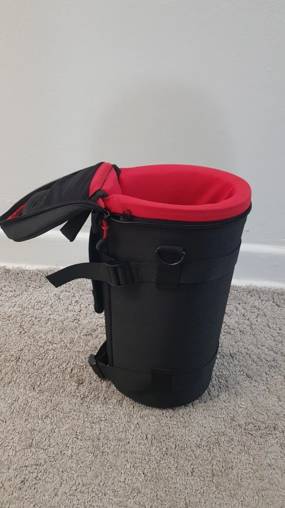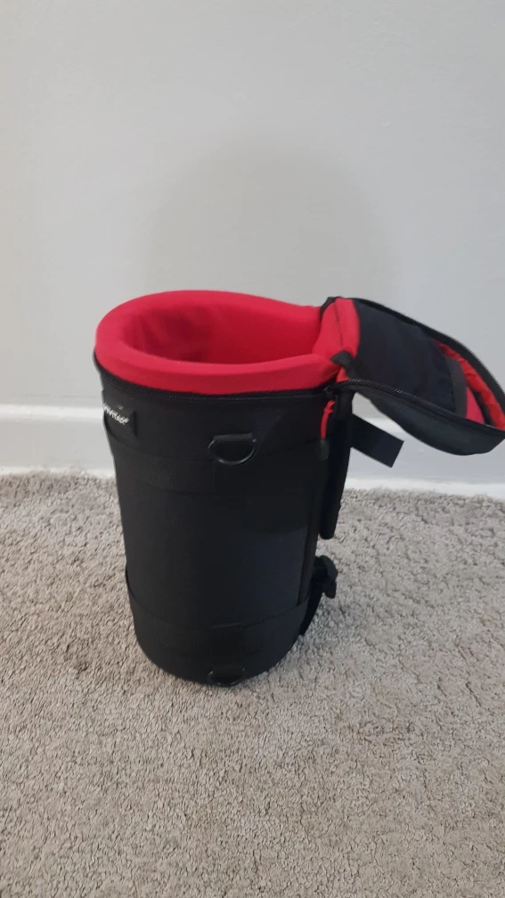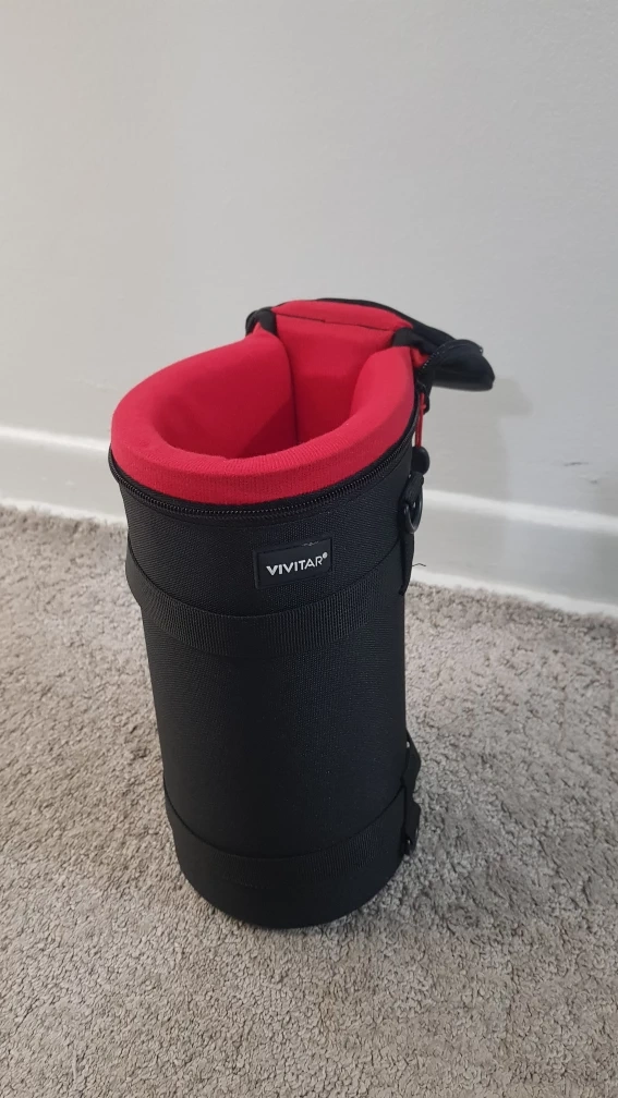 Selling a Vivitar lens case in black. It's in great shape and ready to protect your lens! The interior is red.