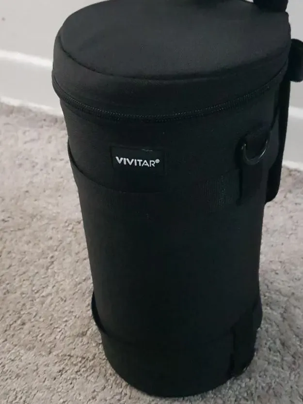 Selling a Vivitar lens case in black. It's in great shape and ready to protect your lens! The interior is red.