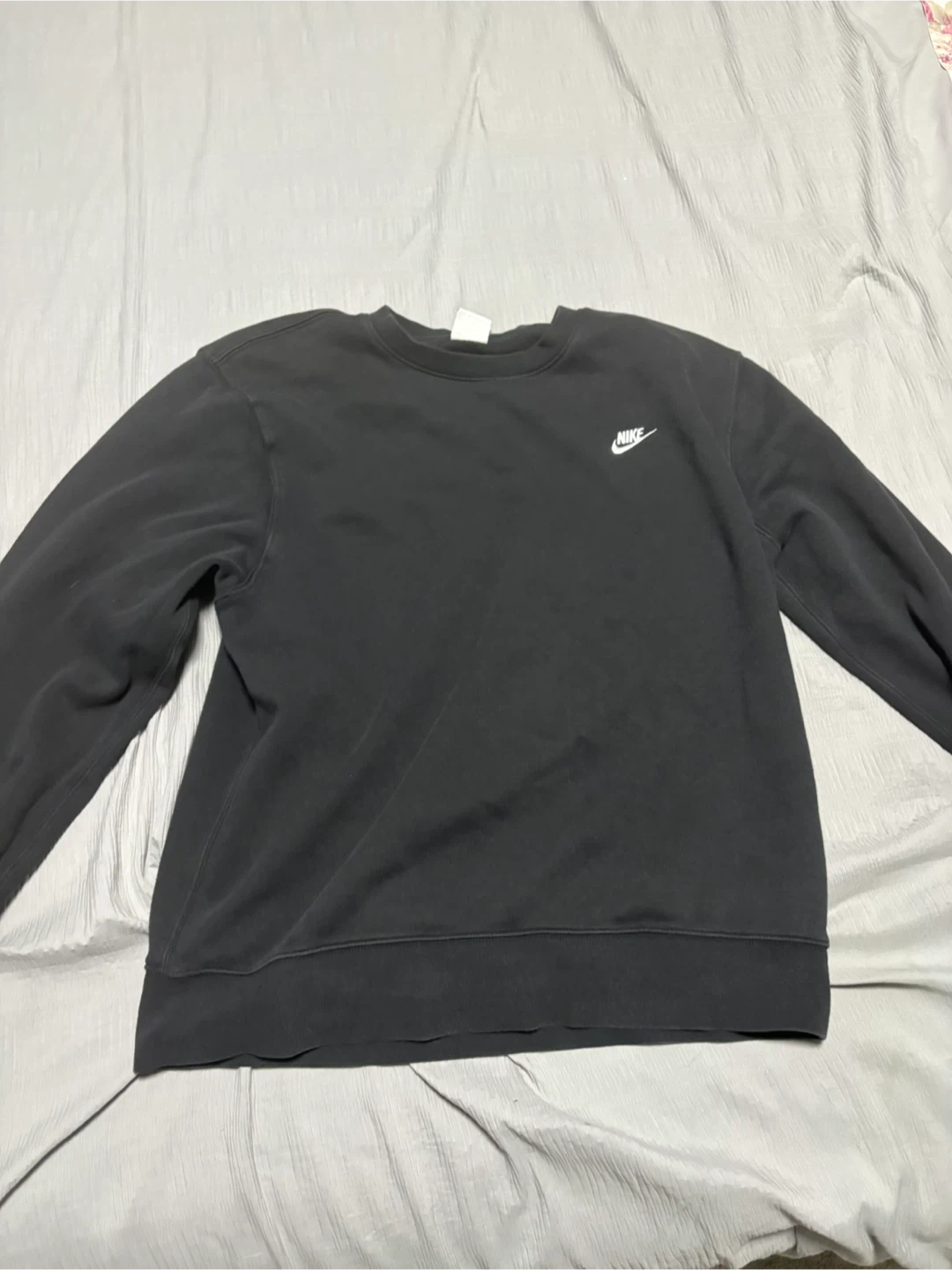 Selling a Nike crewneck sweatshirt in black. It's a size L and in good condition. Perfect for everyday wear!