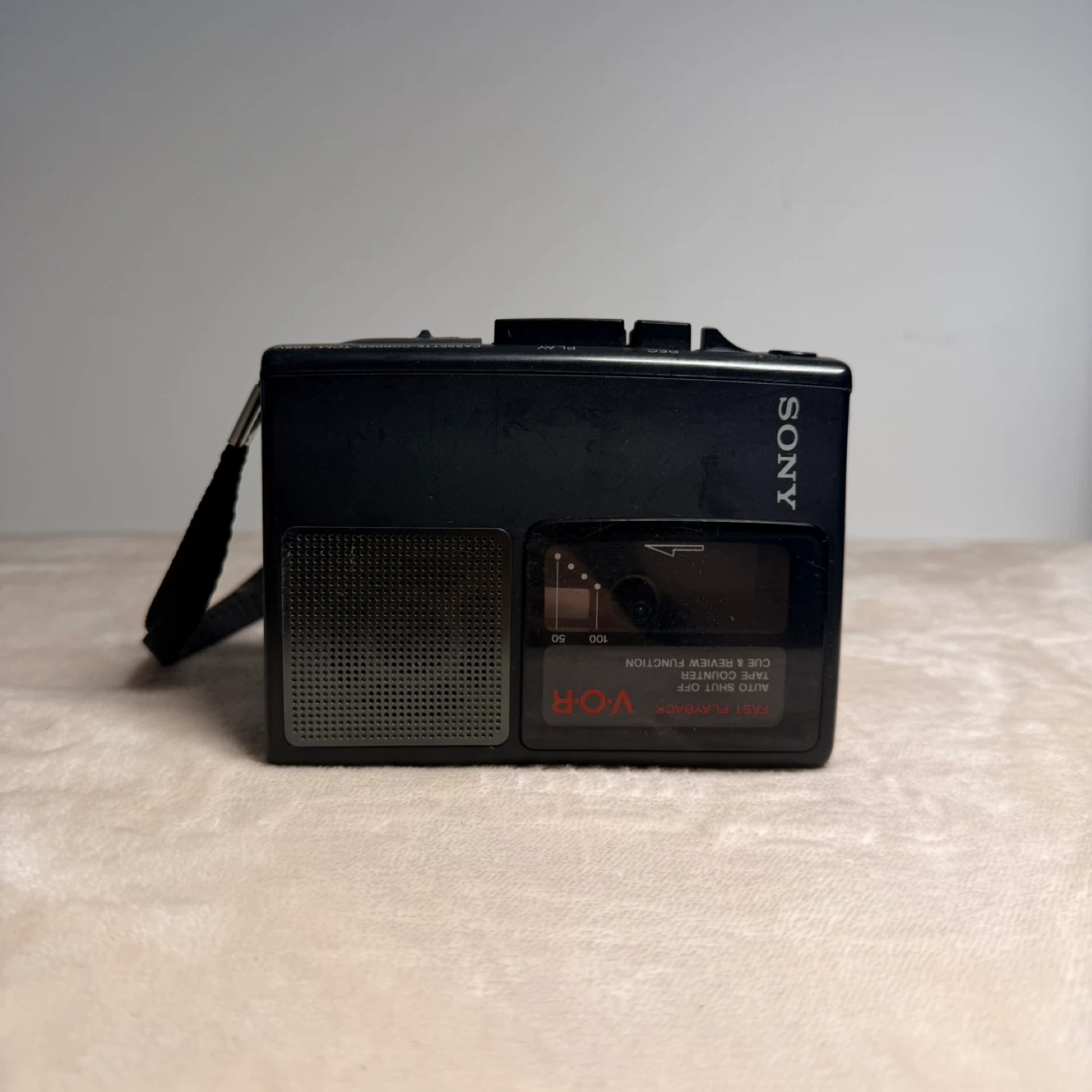 Clean vintage Sony cassette-corder with built-in speaker and microphone. Great for voice recording, transcription, or collectors of vintage electronics.