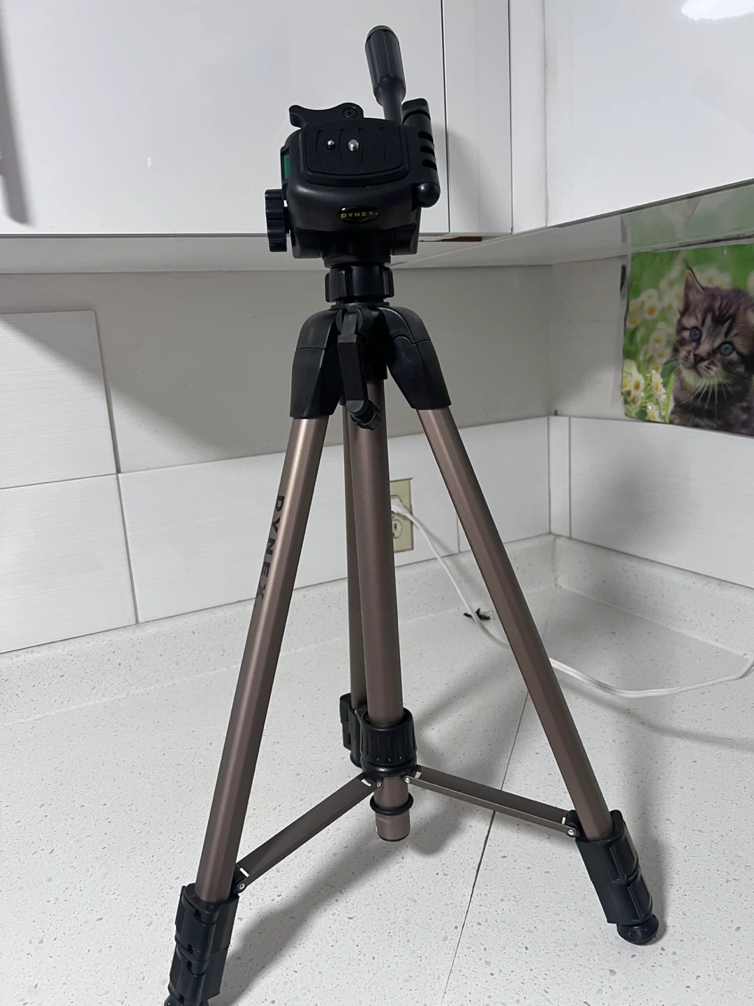 This Dynex tripod offers stable support for your camera. It's made of durable metal and plastic. Comes with a black carrying bag for easy transport.