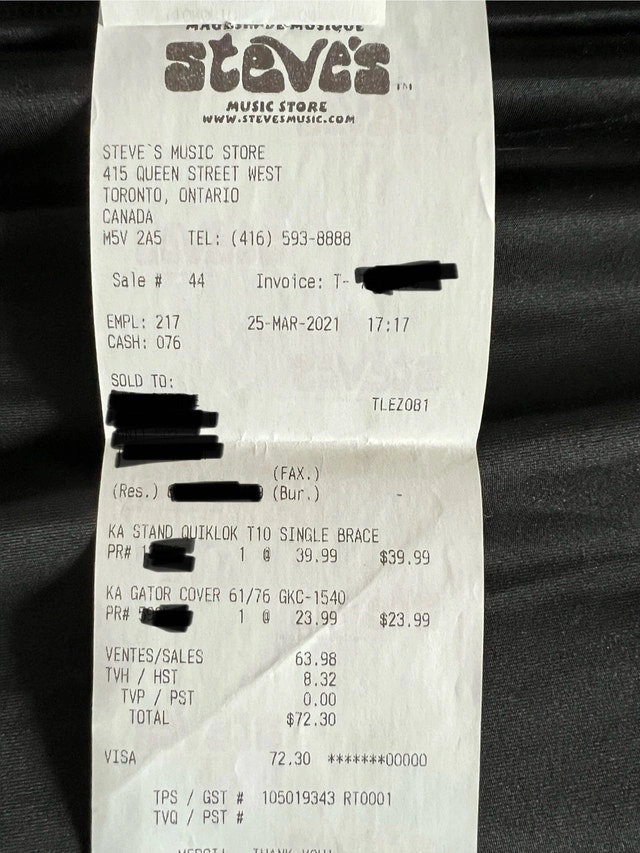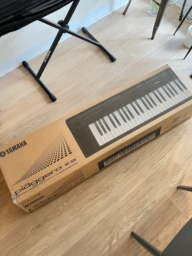 Bought this Yamaha Piaggero NP-32B 76 key portable piano keyboard during covid lockdown as a hobby but didn’t use it very much. I used it about 10 times. It has not been touched for years. It is in brand new pristine condition. It comes with an adjustable stand and cover. Everything was purchased from Steve’s music store on Queen St. I have the original box and packaging as well as the receipts. Mine was purchased for $409.99 total $463.29 Quiklok stand purchased for $39.99 Gator cover $23.99 Total $72.30 Must pick up at King & Spadina. Upon meeting, you can inspect all items. You can take the keyboard out of the box and plug it in to ensure it works in my lobby. Keyboard weight is 12 lbs.