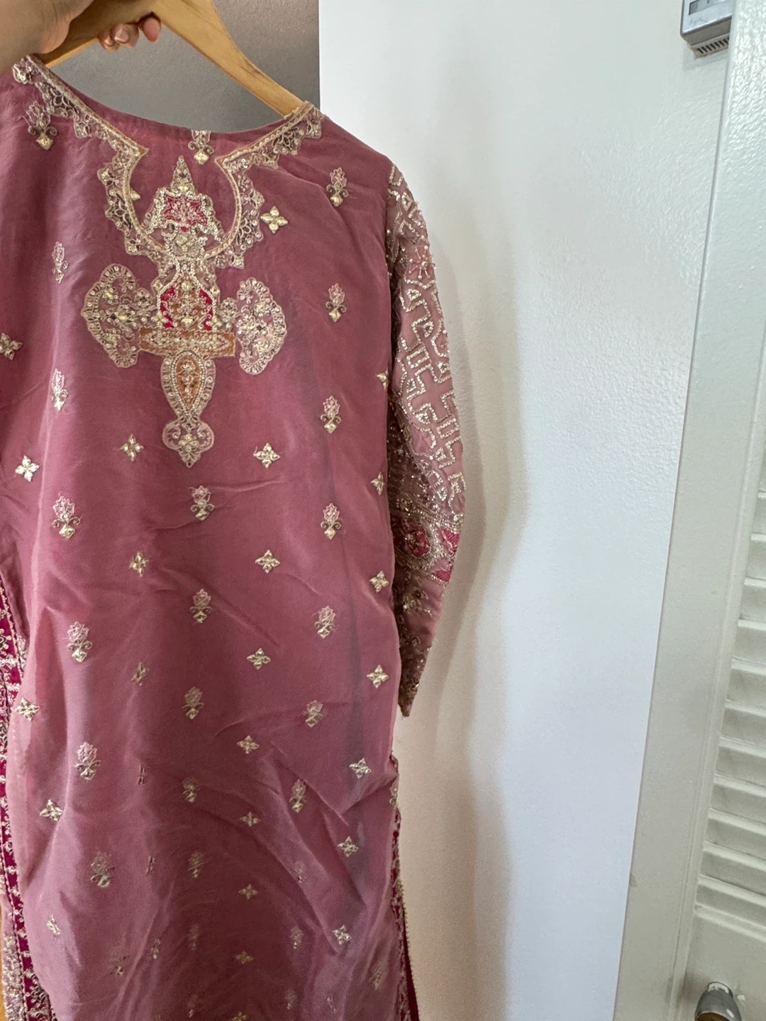Selling a beautiful qalamkar 3 piece dress. Worn only a couple of times. Spent more than $200 on this as it was unstitched. Fits Small to Medium