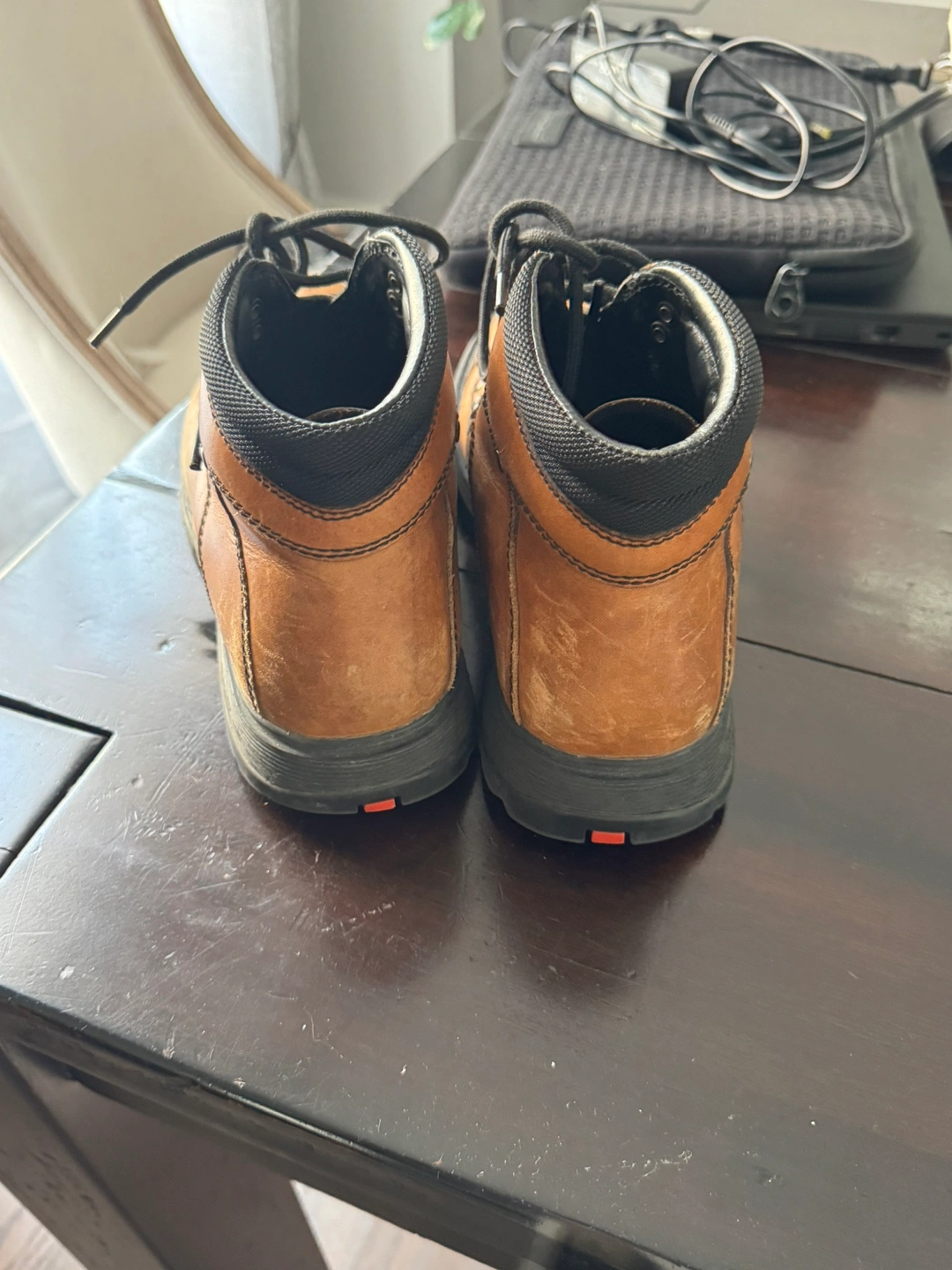 Leather hiking boots with a black and brown colour scheme. Lace-up closure. The boots have a rubber sole and are in great condition. They are a size 7,5.Please message with any questions.