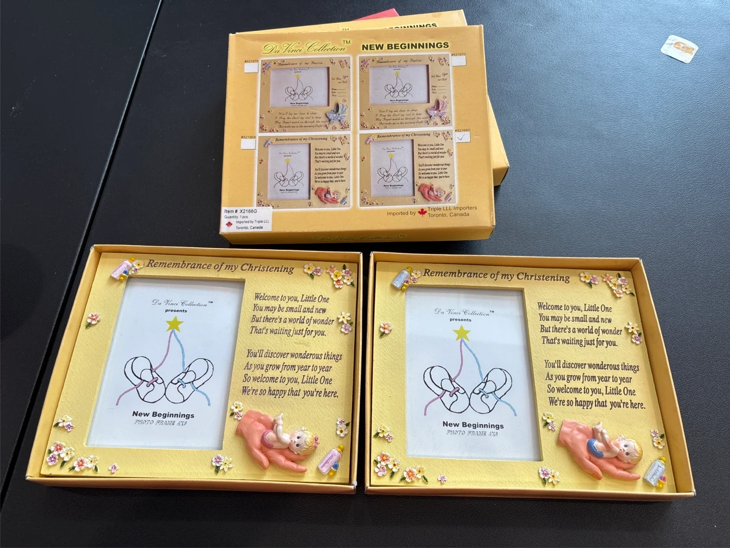 This Da Vinci Collection photo frame celebrates a 'New Beginnings' christening. It's designed to hold a photo and features sweet sentiments. A lovely keepsake for any little one!
