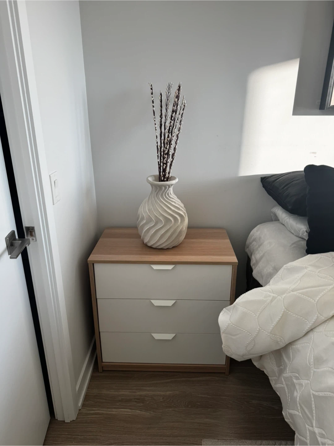 Selling pair of 3 drawer chests from IKEA as well as a 2 drawer chest White and light oak/ash wood tone. Both are in Amazing condition and ready for a new home.