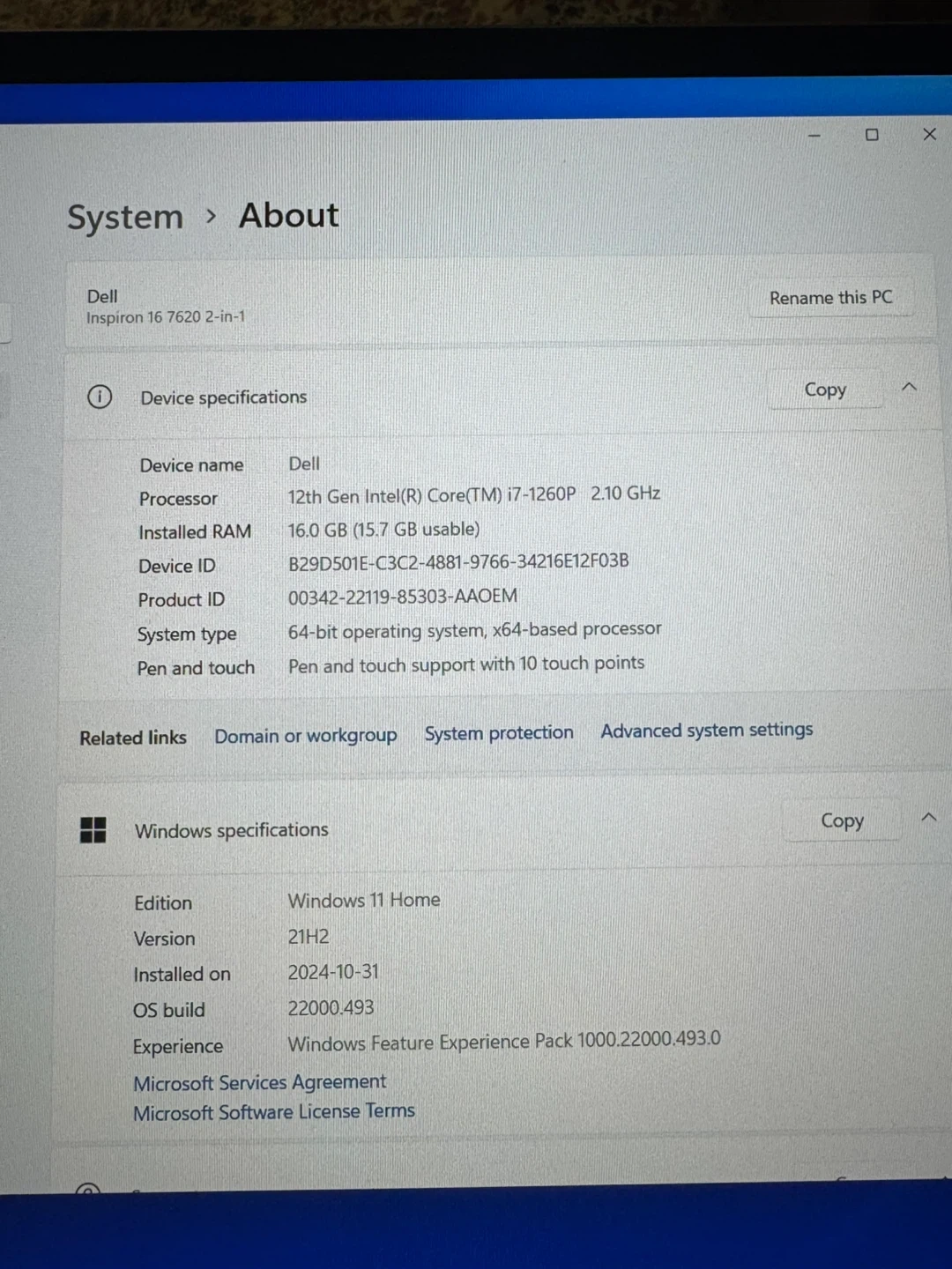 This is a Dell Inspiron 2-in-1 convertible laptop. It's a versatile device that can be used as a traditional laptop or a tablet. The screen displays Windows 11.