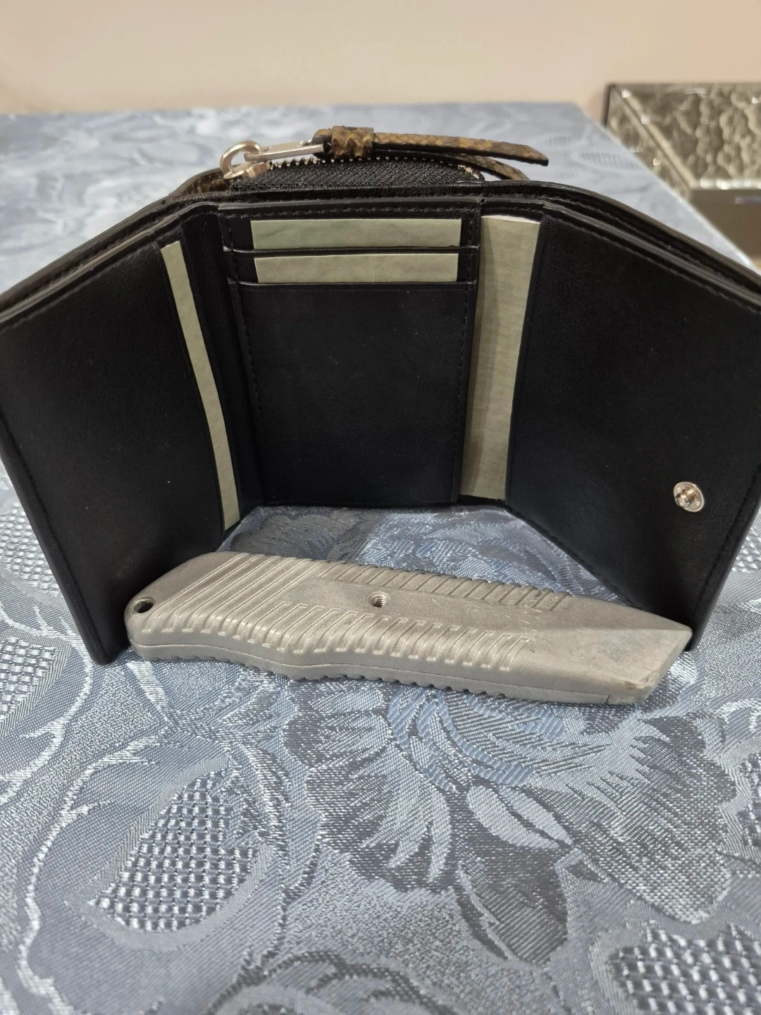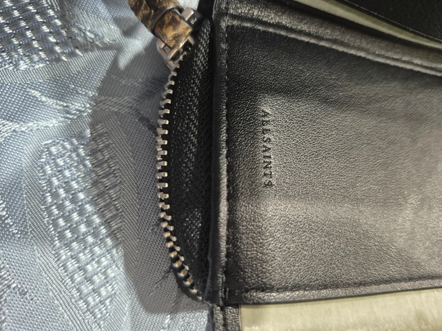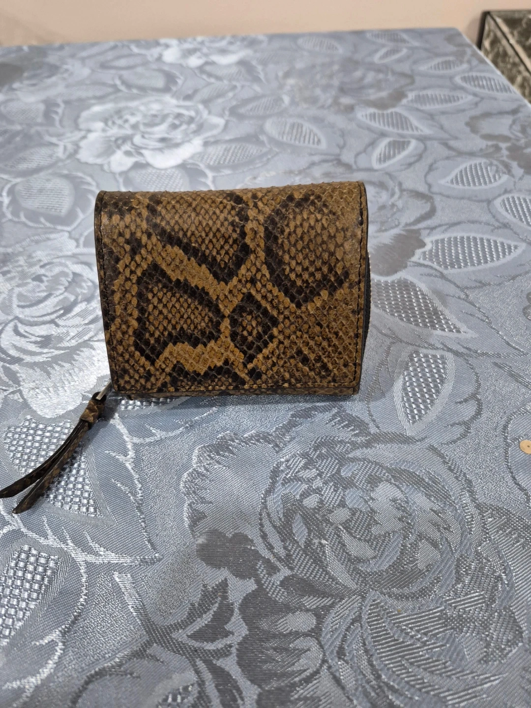 This is an Allsaints wallet with a snakeskin pattern. It's in great condition and has a zipper compartment as well as a snap closure. Perfect for everyday use!