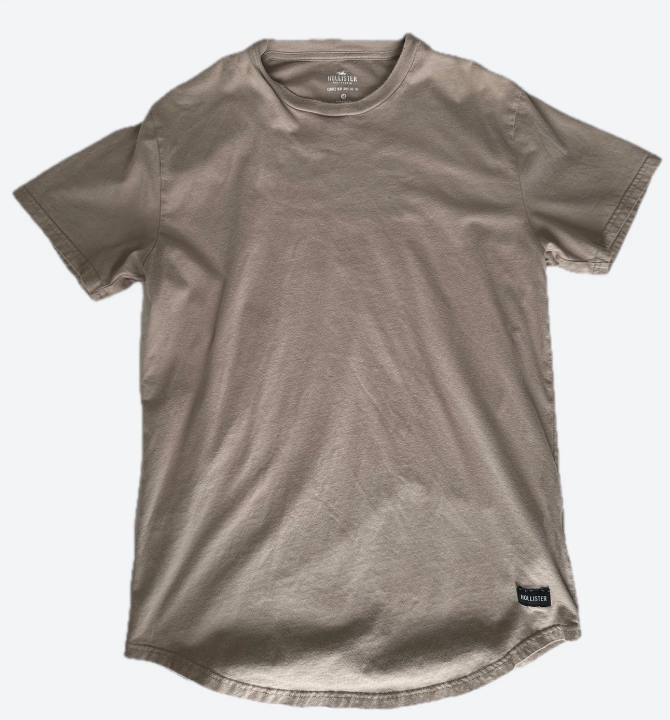 This is a Hollister curved hem crew neck t-shirt. It's a size medium. Cotton blend material.