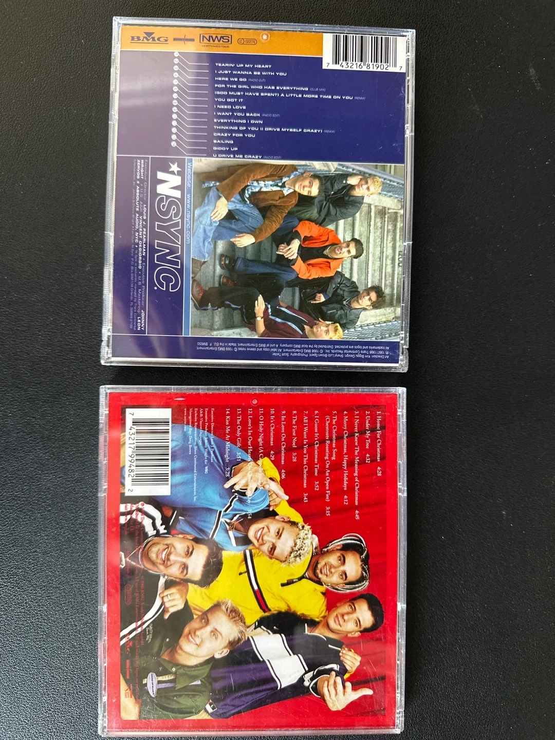 Two NSYNC CDs are included: 'Home for Christmas' and the self-titled album 'NSYNC'. These are music CDs for your collection. Great for fans of 90s pop music!