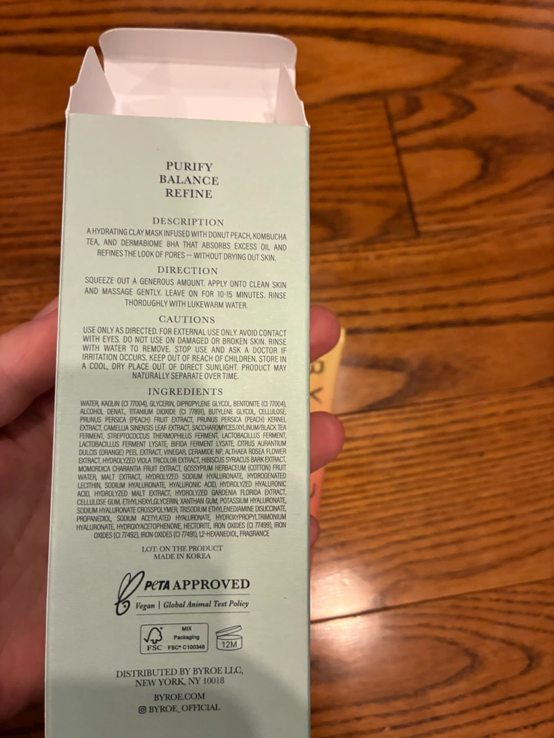 BYROE Peach Kombucha Tea Purifying Clay Mask 2.82 oz / 80 g