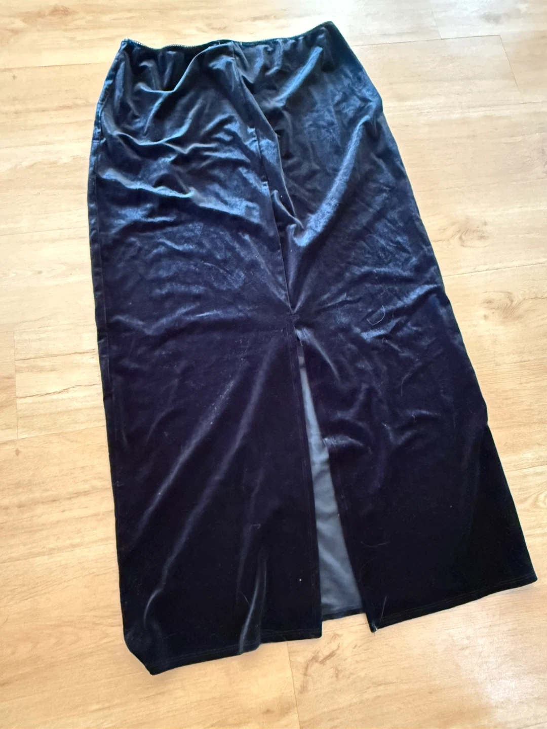 Selling a Wild Fable black velvet skirt in size L. It's never been used and ready for a new home! The skirt has a stylish slit at the back and a comfortable elastic waistband.