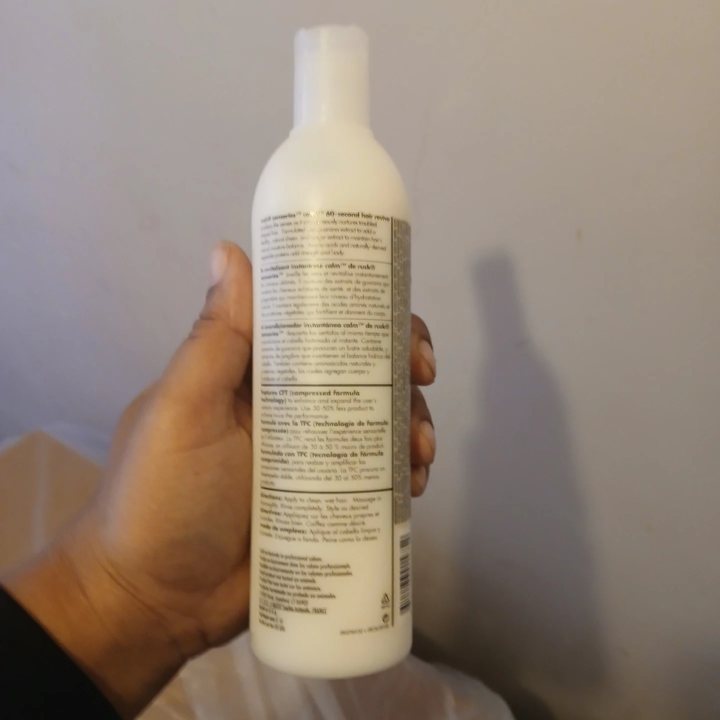 Selling a bottle of RUSK Sensors Calm Conditioner. It contains guarano and ginger for 60-second hair revive. It instantly nurtures troubled, stressed hair