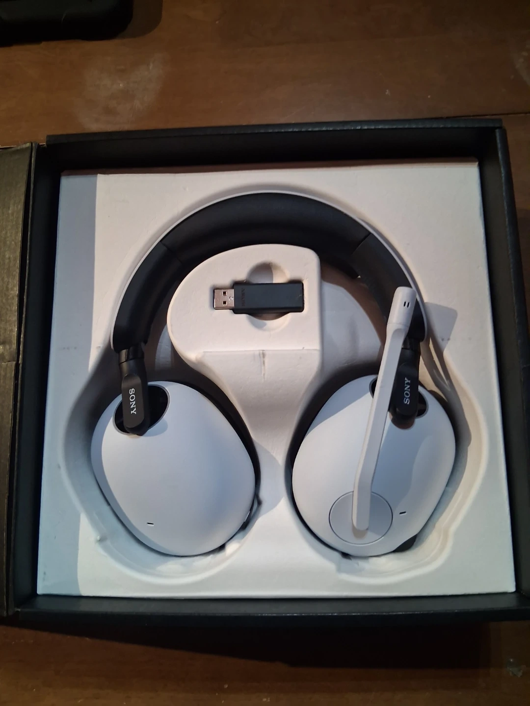 This is the Sony INZONE H9 wireless noise cancelling gaming headset. It connects via USB-C dongle or Bluetooth. It's compatible with PlayStation 5 and PC. Includes original packaging and accessories.