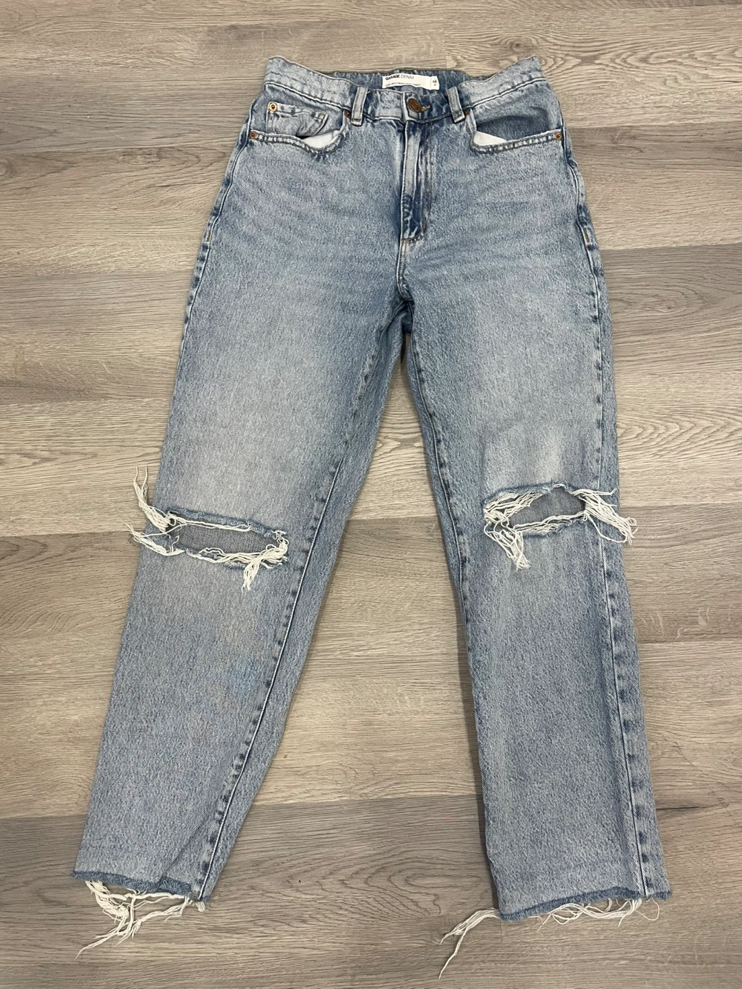Light wash Garage denim jeans with rips on the knees they are on very good condition These jeans are a size 03 for $15