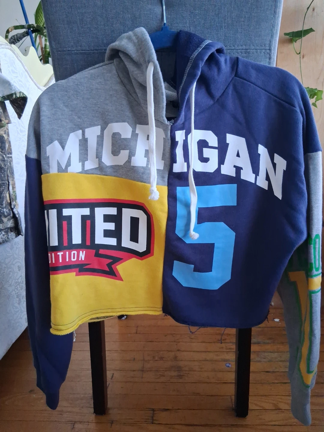 Foever 21 Colourful patchwork hoodie with "Michigan" and "Limited Edition" graphics. Features a "5" and "7" on the front. Made for a unique look! Cropped Hoodie