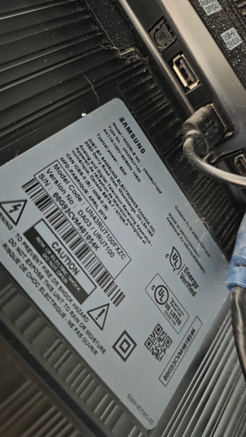 This is a Samsung 4K UHD Smart TV, model UN43RU7100. It's a 43-inch screen size.