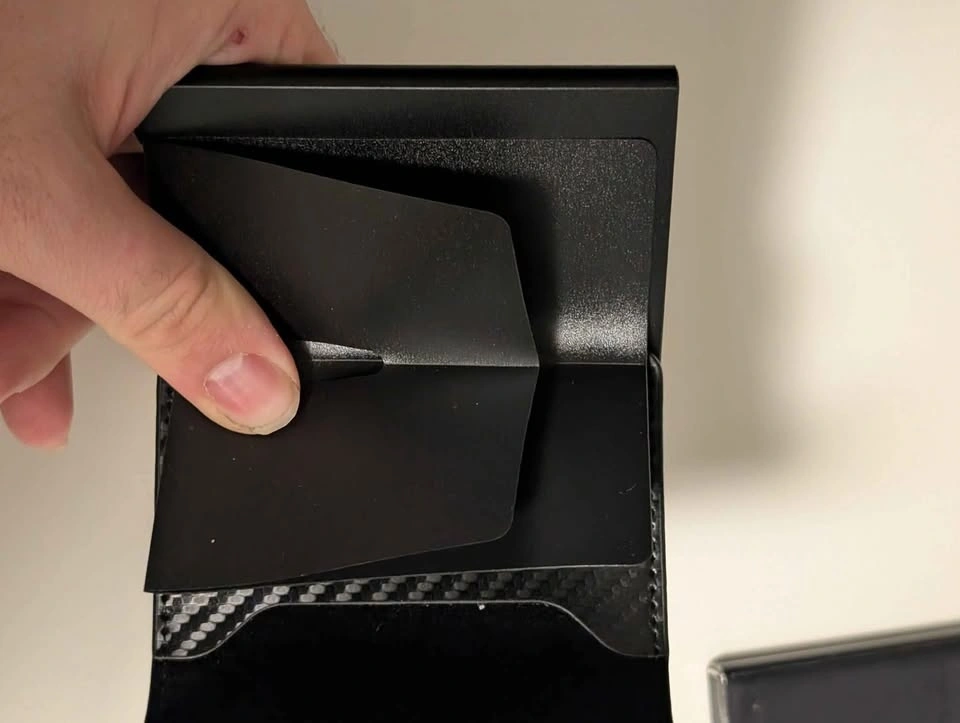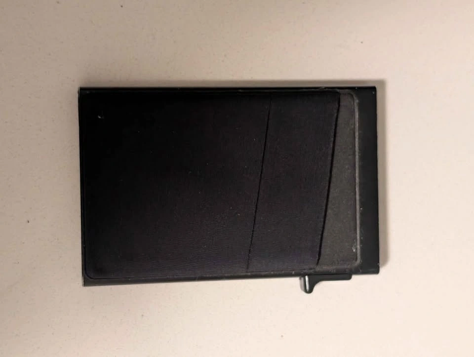 Black metal pop-up wallet: $15