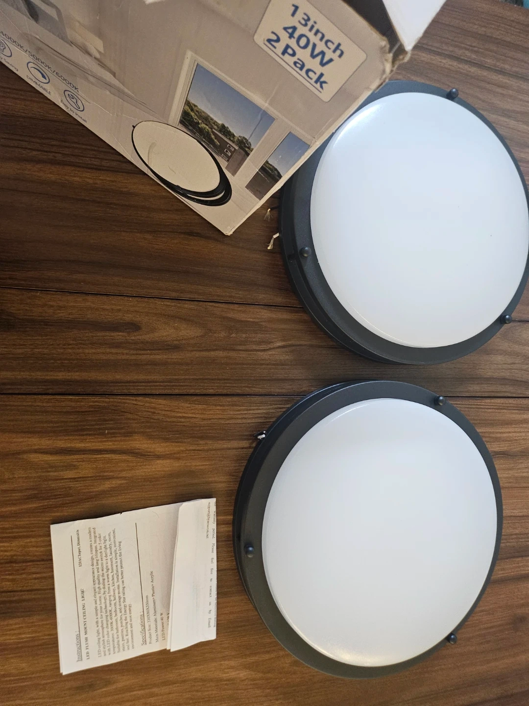 Set of two 13-inch LED ceiling lights. Each light is 40W and offers 5 colour temperatures from warm to cool. Enjoy 50,000 hours of lifespan!