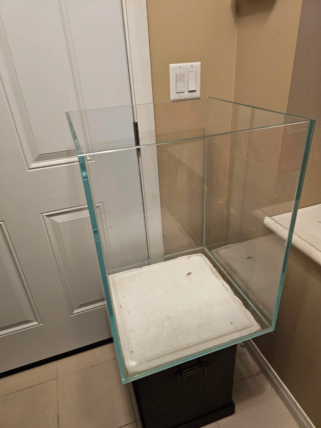 This is a clear glass aquarium tank. It's suitable for aquatic setups. The tank is made of glass. Its 25" High, 19" width, 19" length. 50 gallon. Was custom made for our brand new aquarium set up but was never used. I paid $500 when got it. She has just been sitting in my storage, collecting dust for the past 6 months.