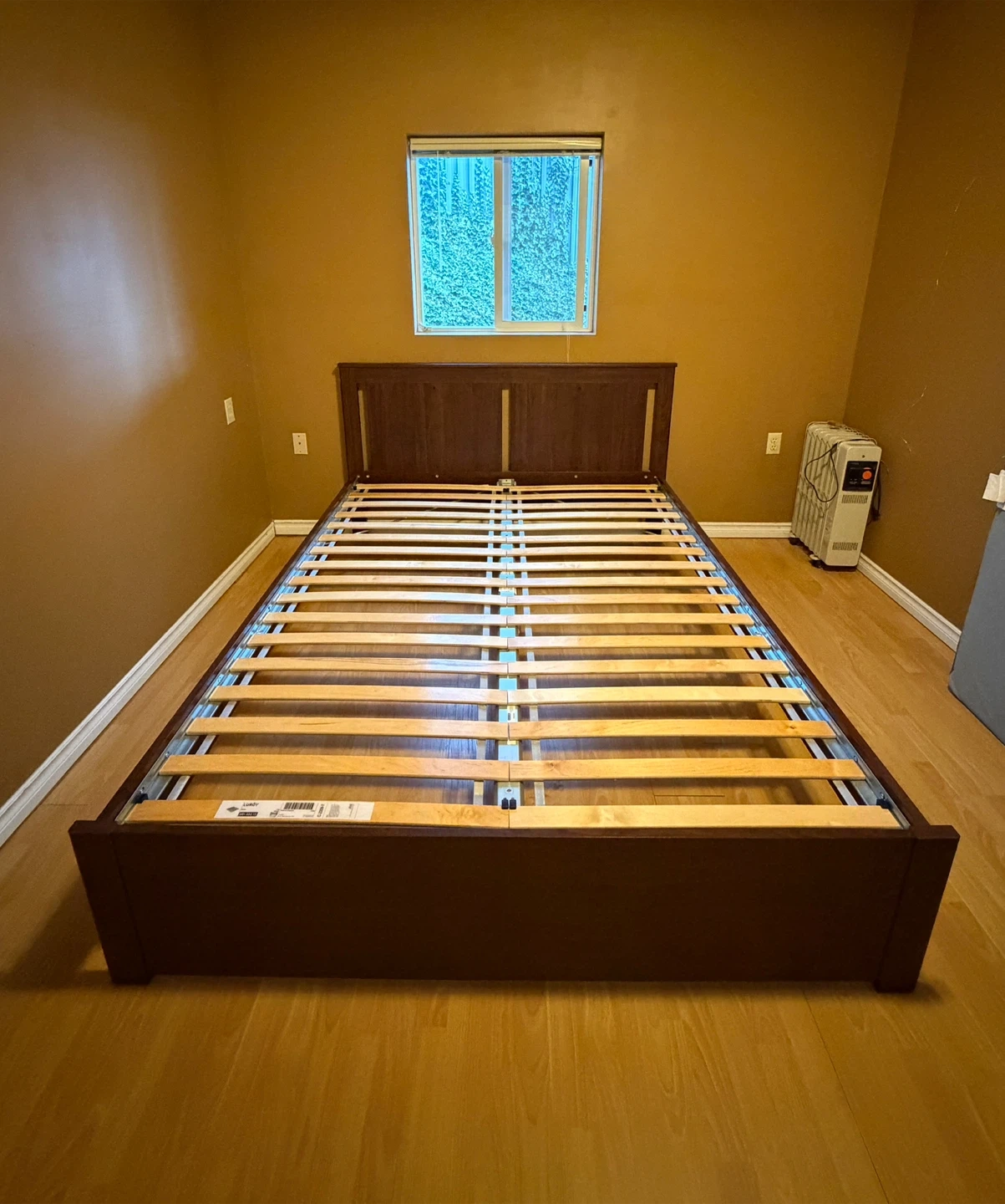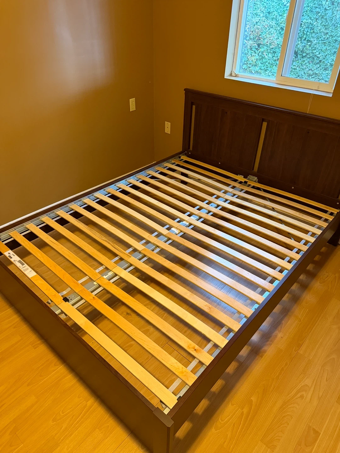 Dark Wood Queen Bed Frame with Slatted Base