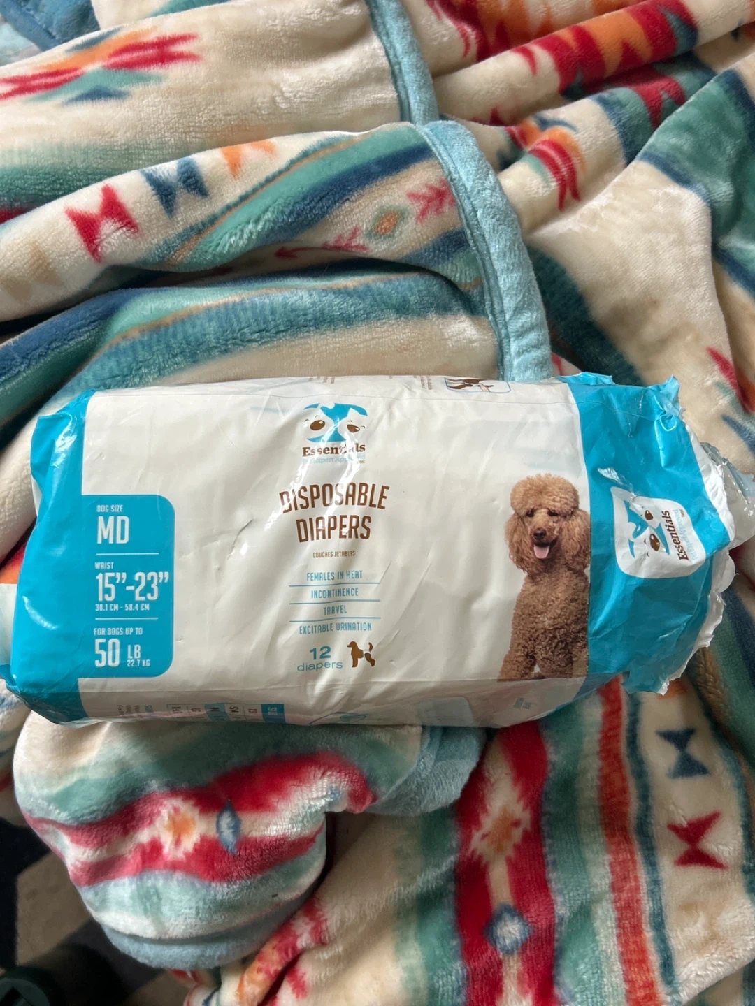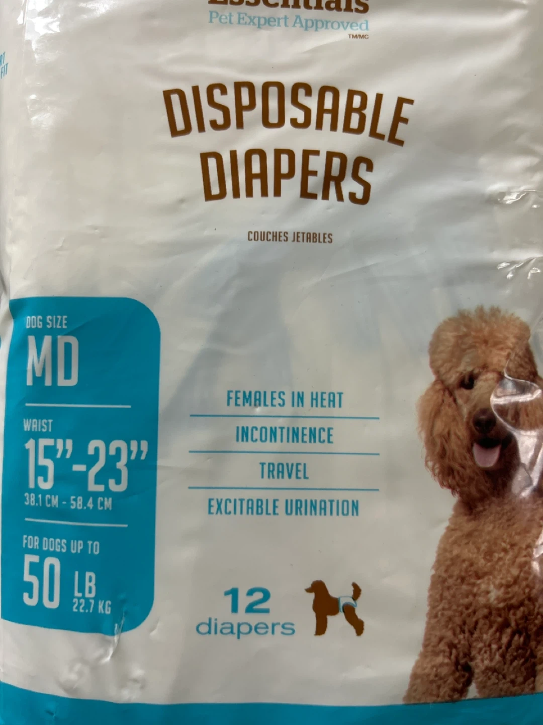 Essentials disposable diapers for dogs. Size MEDIUM fits waists 15"-23"