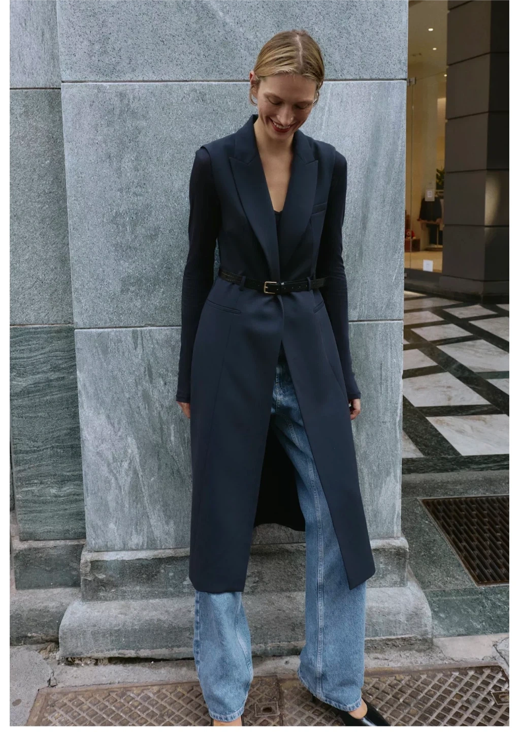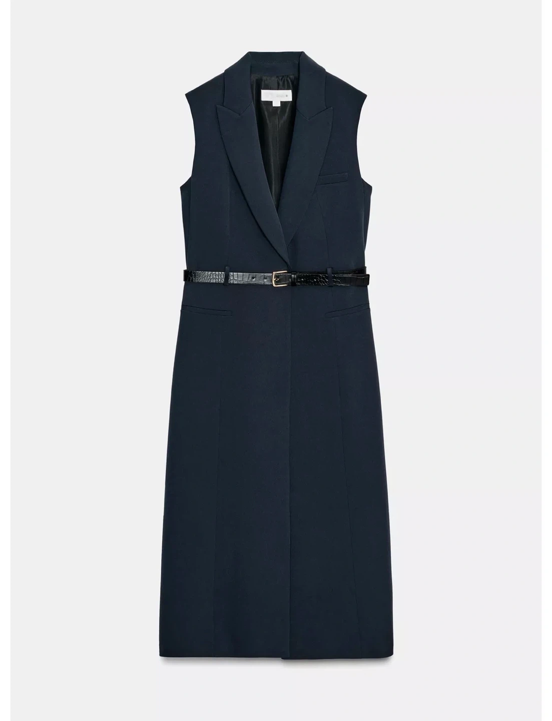 Zara Navy Sleeveless Long Vest with Belt
