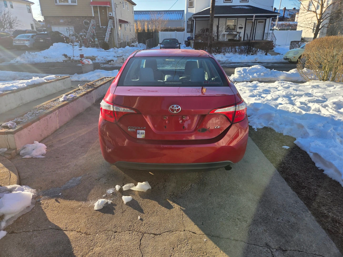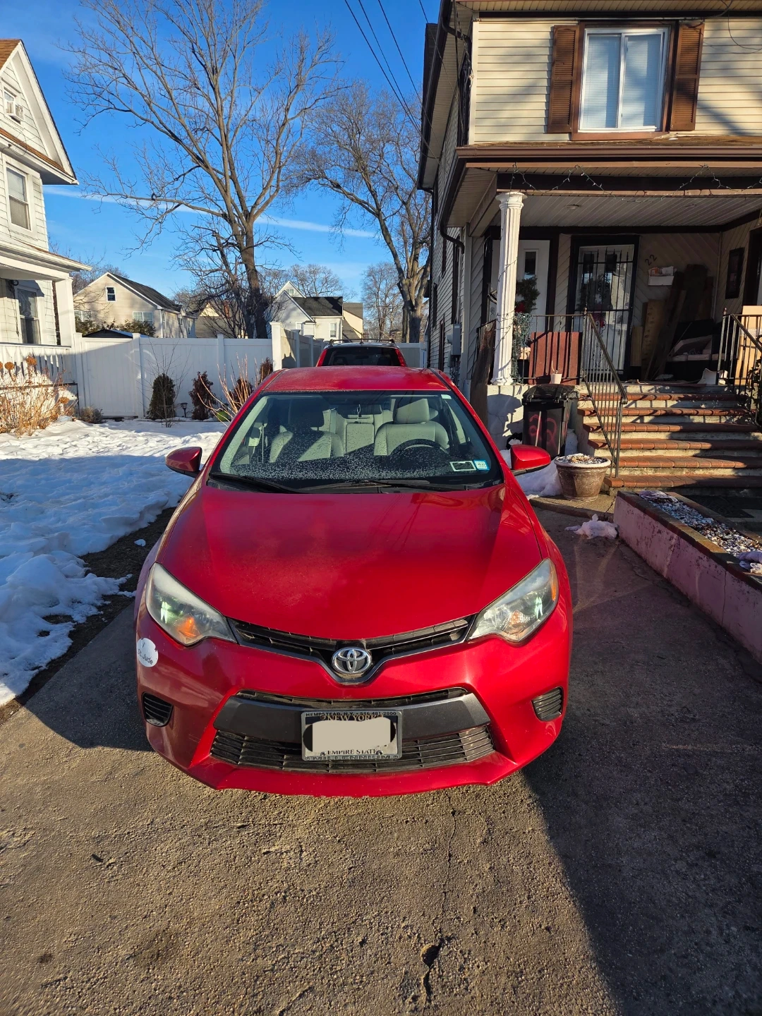 This is a red 2015 Toyota Corolla LE sedan. It has four doors and seating for five. No lights on the dash, clean NY Tittle, new tires, no accidents. And Only 69,995miles.