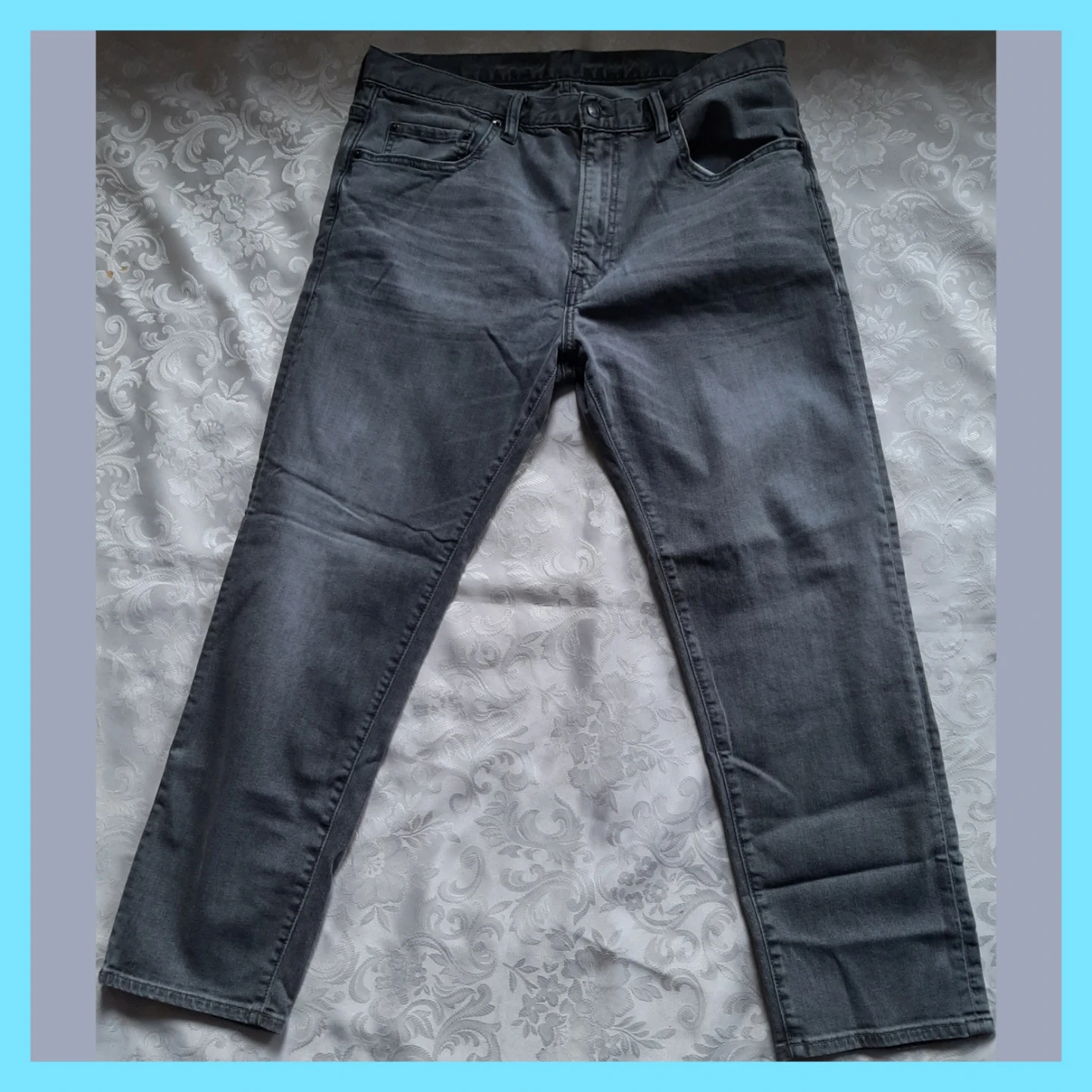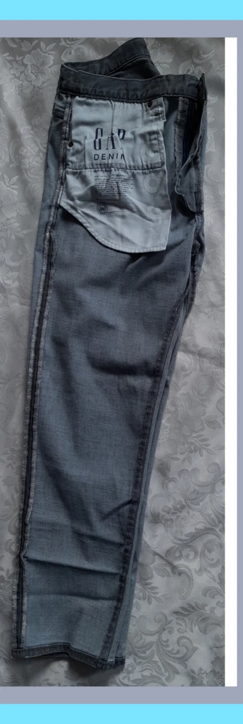 GAP men's denim jeans in a grey wash. These jeans are made from a durable denim material. They are a versatile addition to any casual wardrobe.