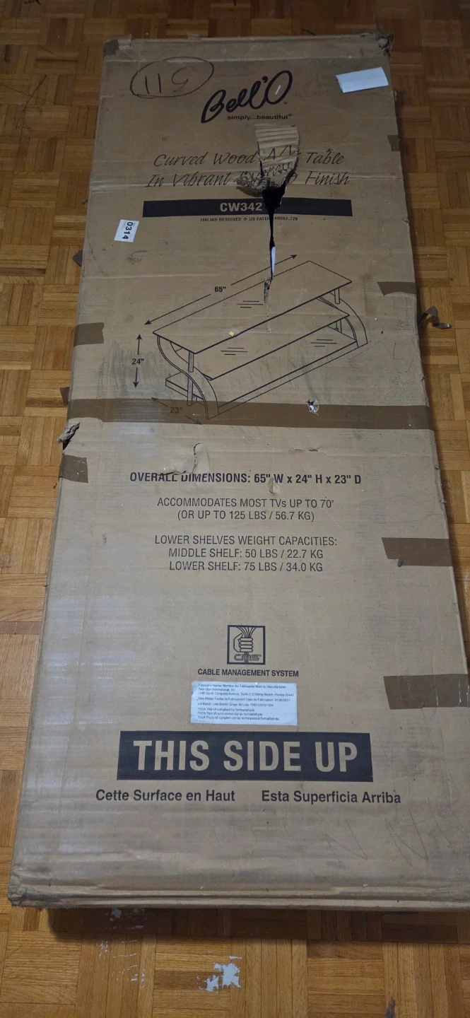 Bell’O CW342 TV Stand – NEW IN BOX – Fits TVs up to 70"