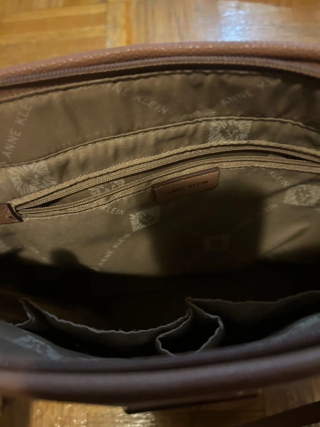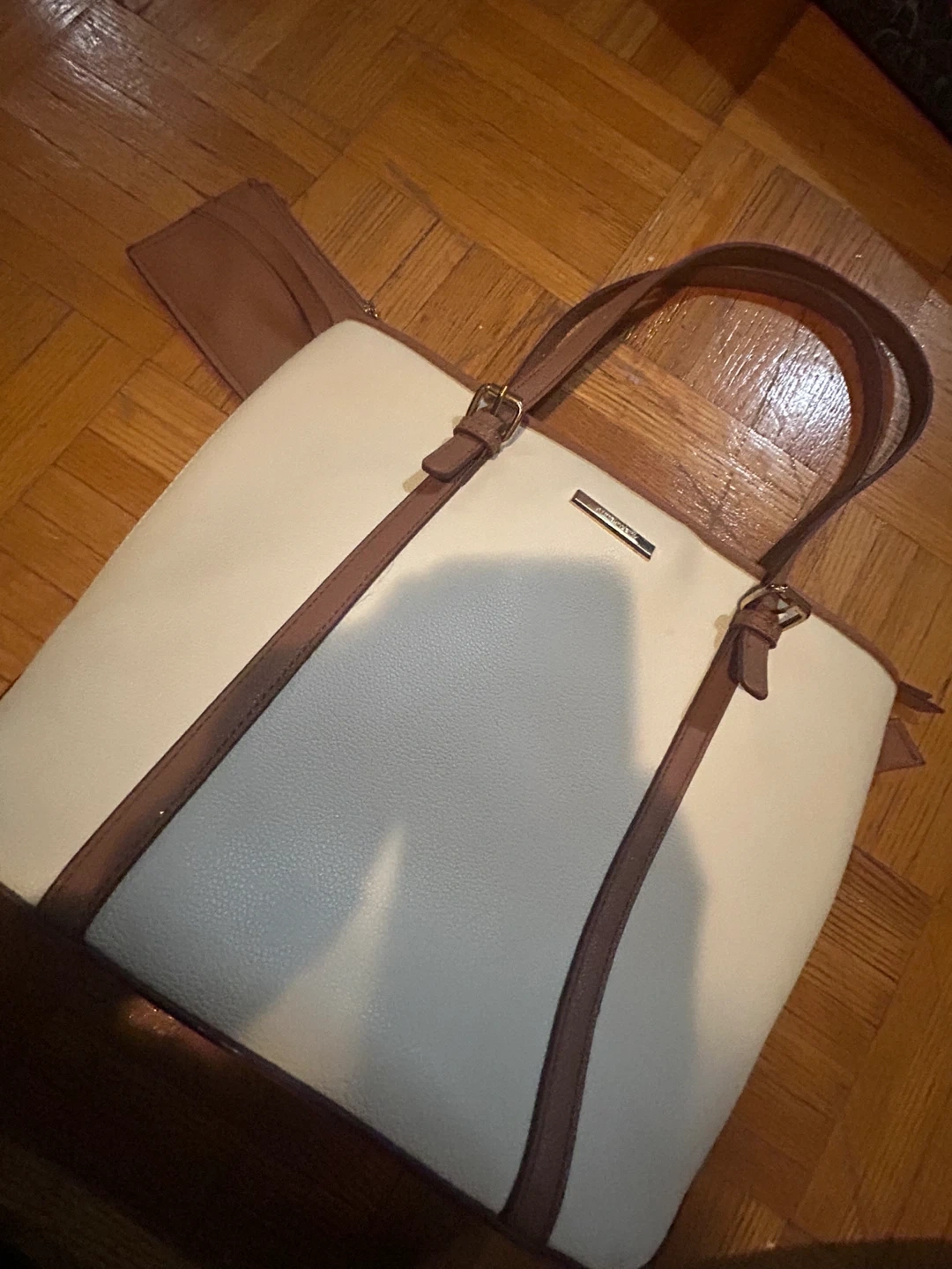 Looking to sell this Anne Klein tote bag! It's in great condition and comes with a matching card holder. The bag features a cream and brown colour scheme. Perfect for everyday use or a stylish outing!