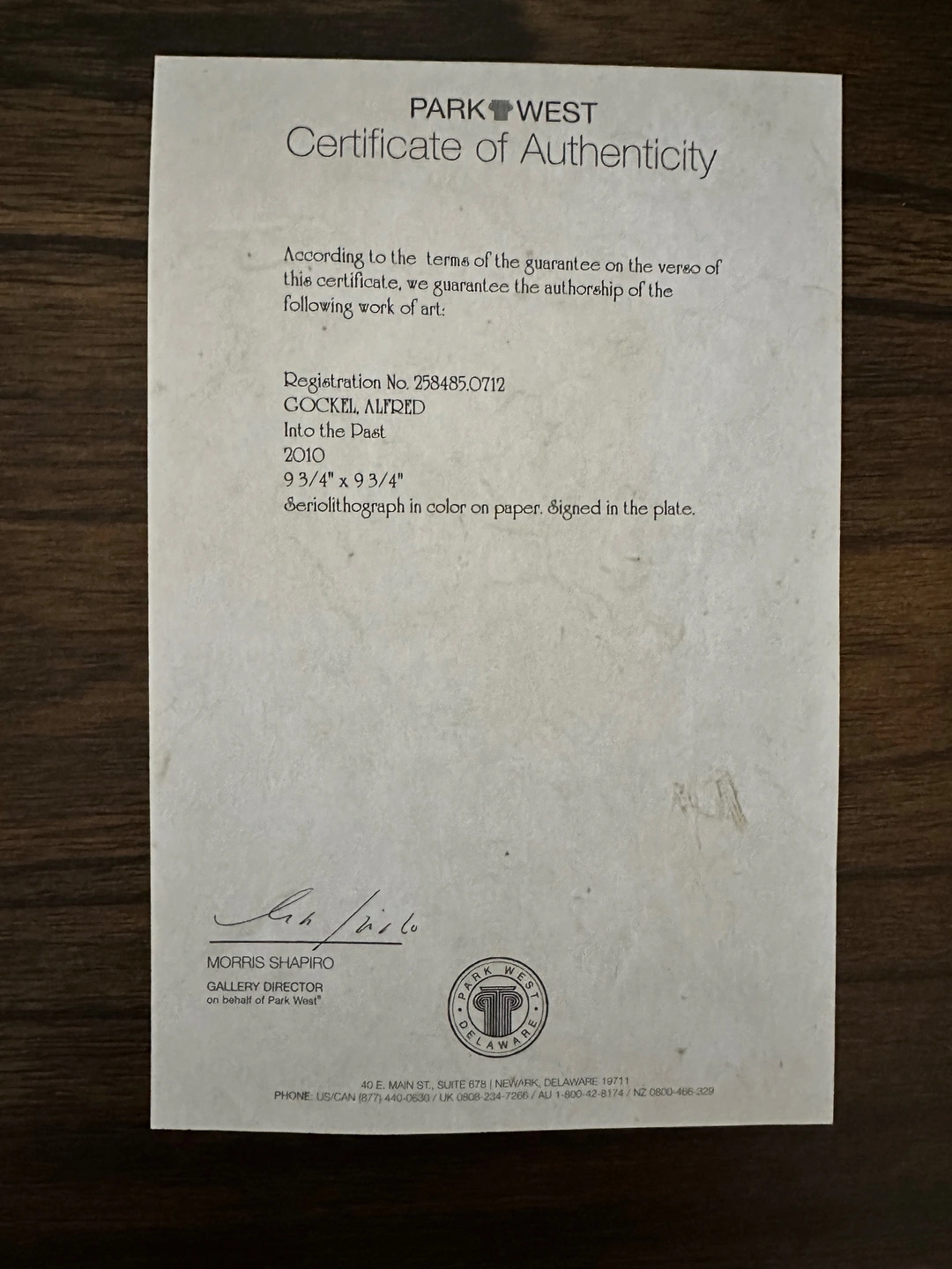 Seriolithograph in color on paper. Signed in the plate. Has a certificate of authenticity from Park West.