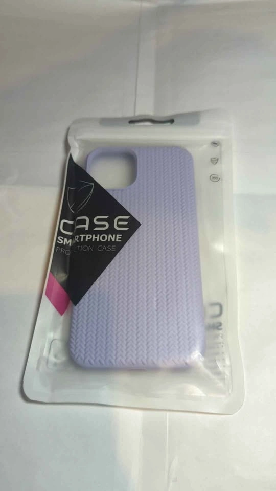 Cute light purple case for iPhone 13 or 14. Features a woven pattern braid design. Soft and shockproof cover.