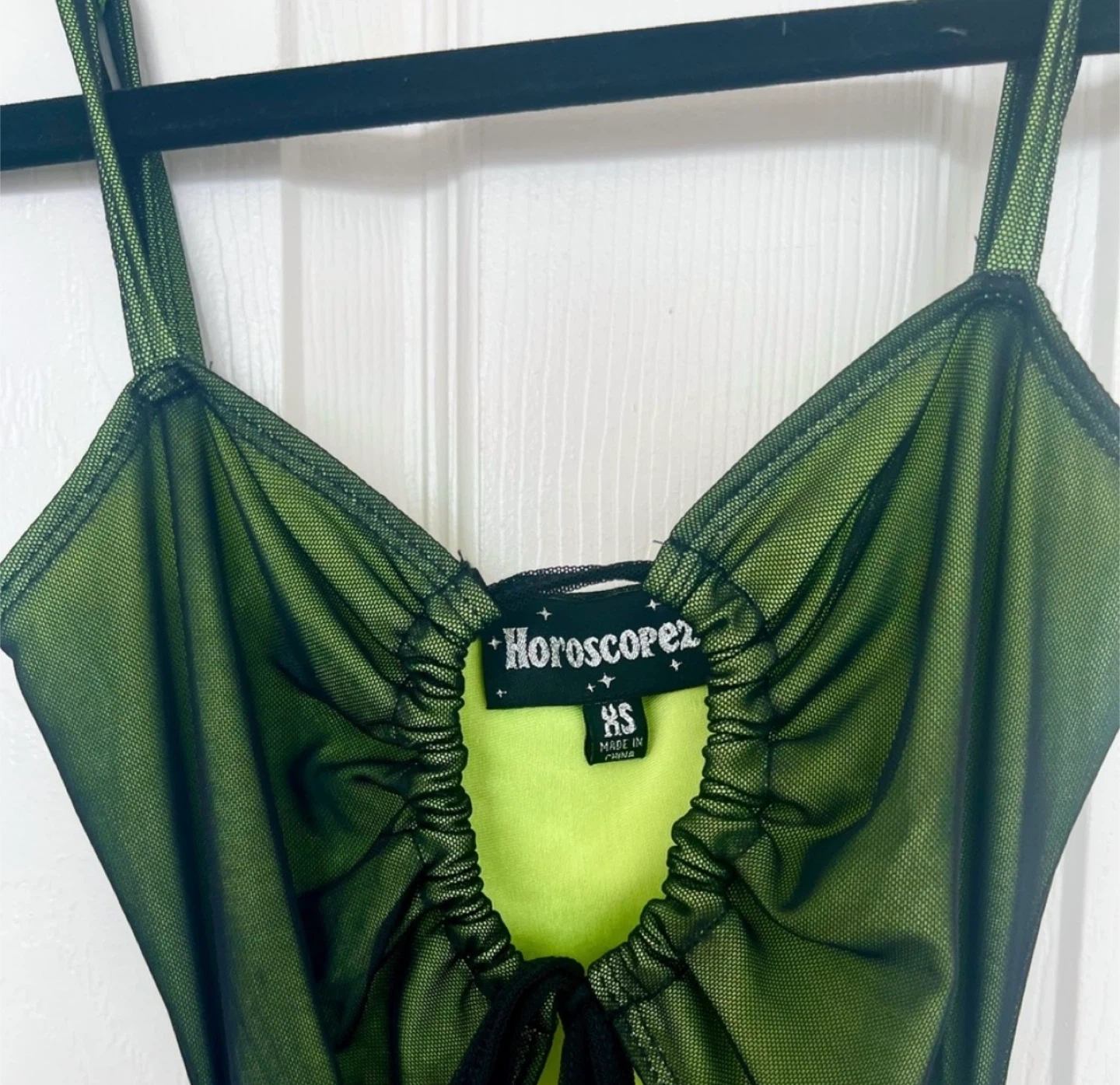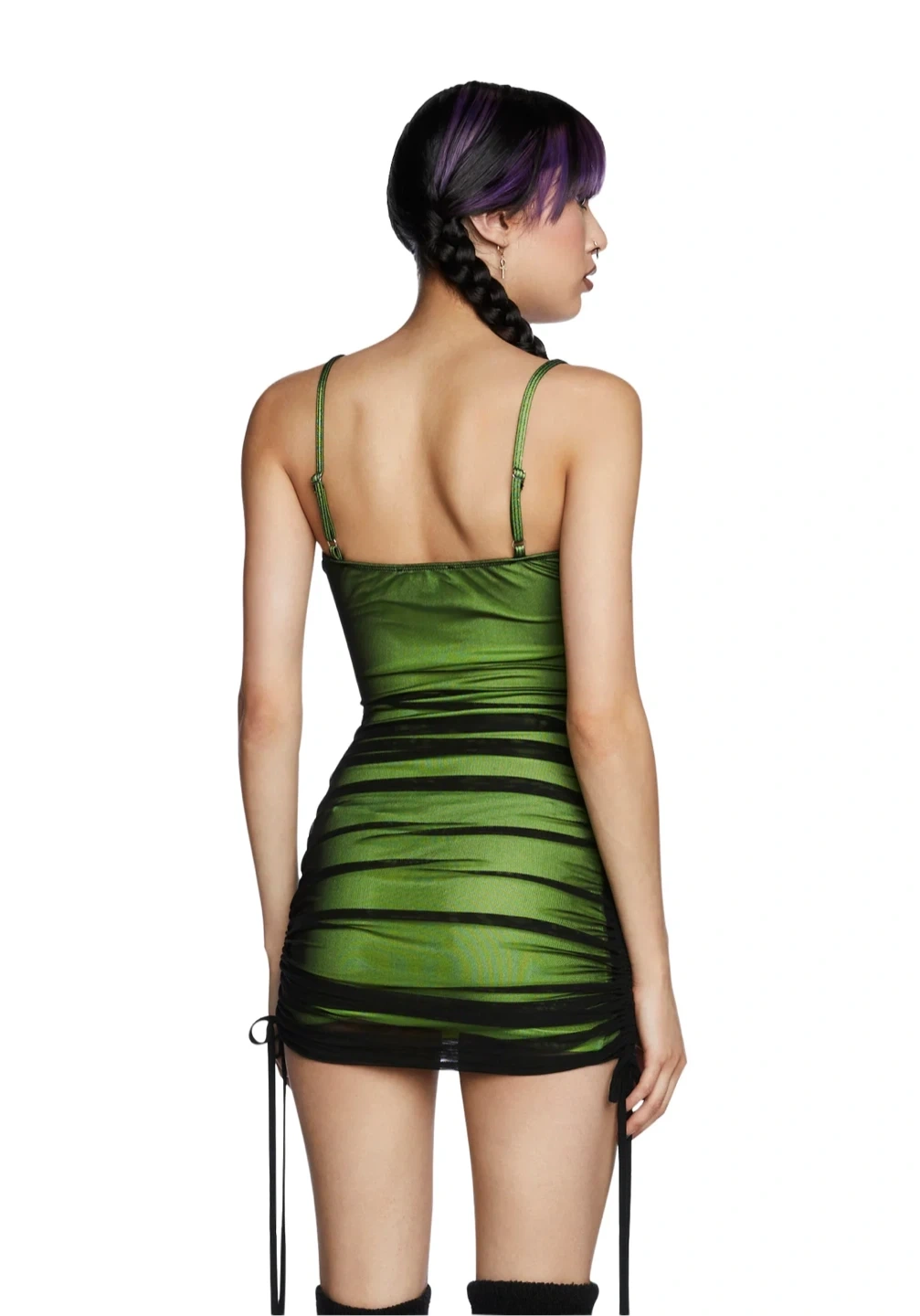 Horoscopez Green Mesh Ruched Mini Dress
