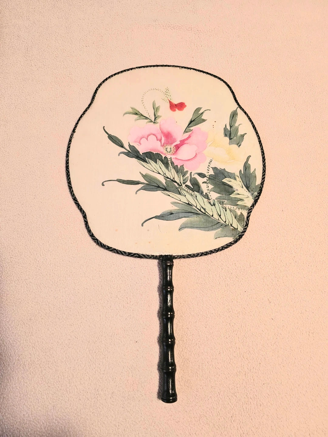 Beautiful Vintage Hand Painted Silk Paddle Fan $3