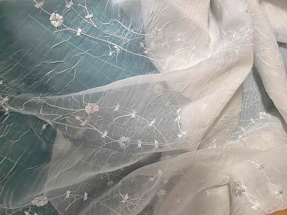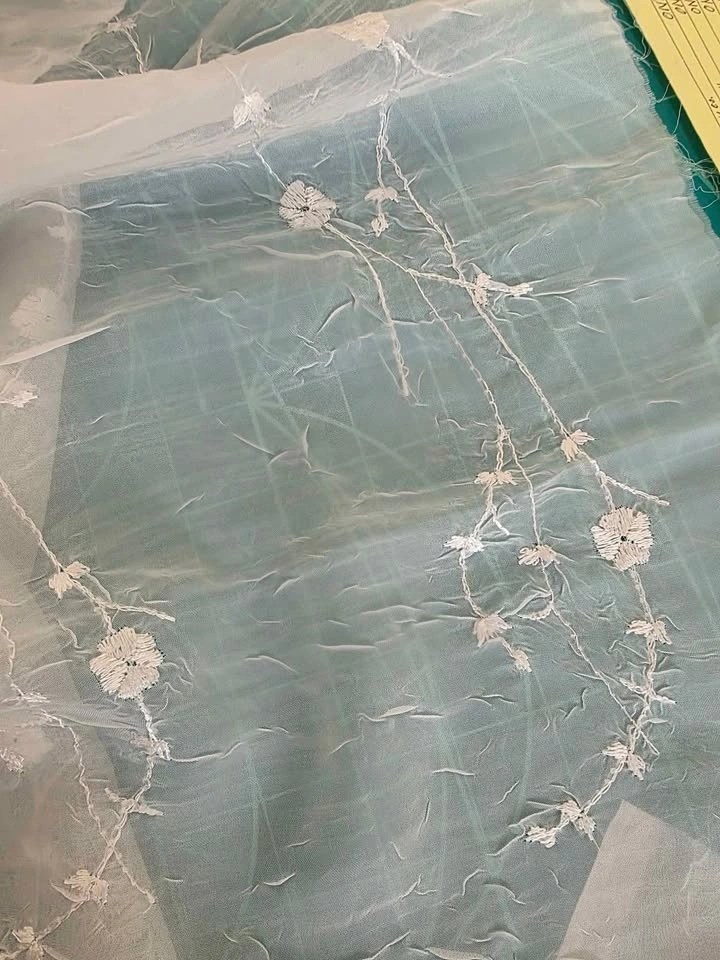 1.7 Meters Wide White Embroidered Crinkle Sheer Fabric