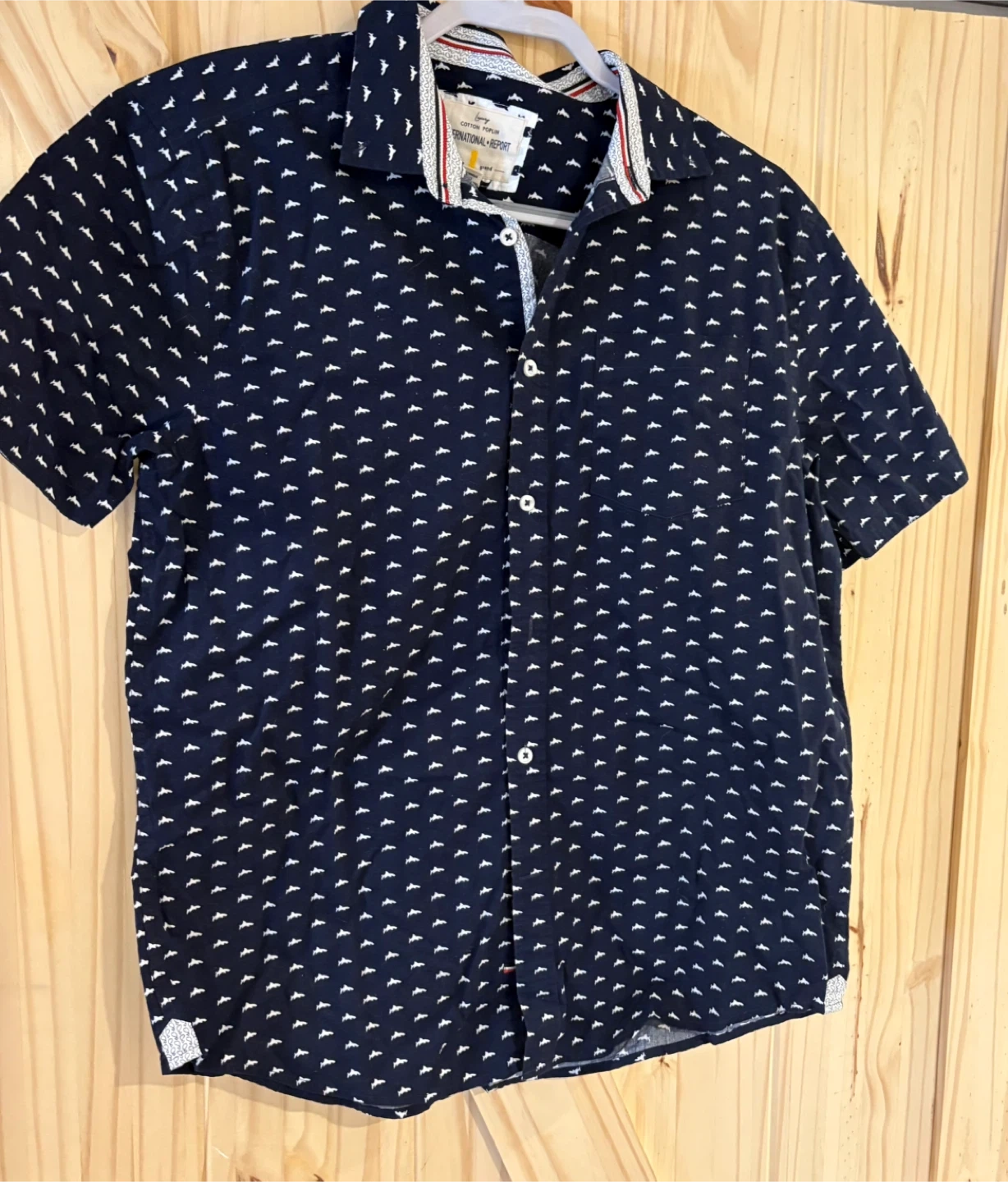 Men’s size L (fits on the smaller size of L) White sharks Print