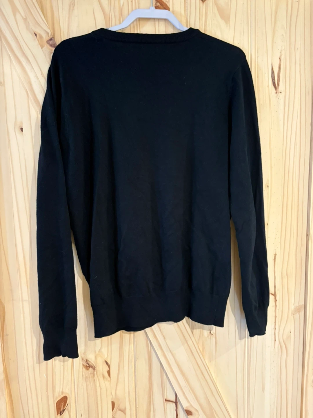 2. classic black V-neck sweater. Perfect for any occasion, it offers both style and comfort. Men’s size M