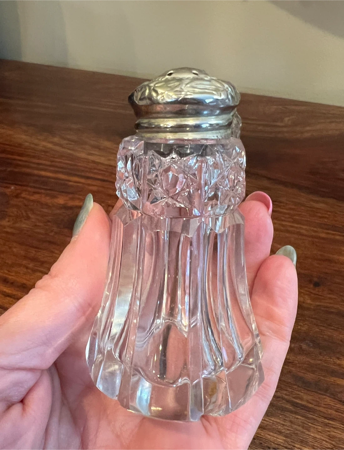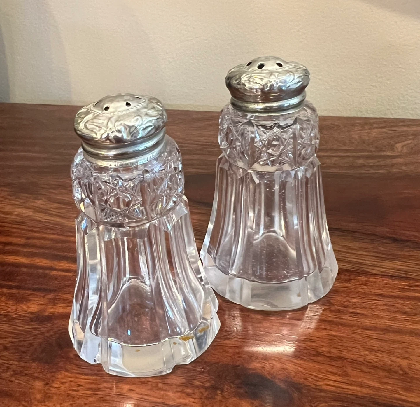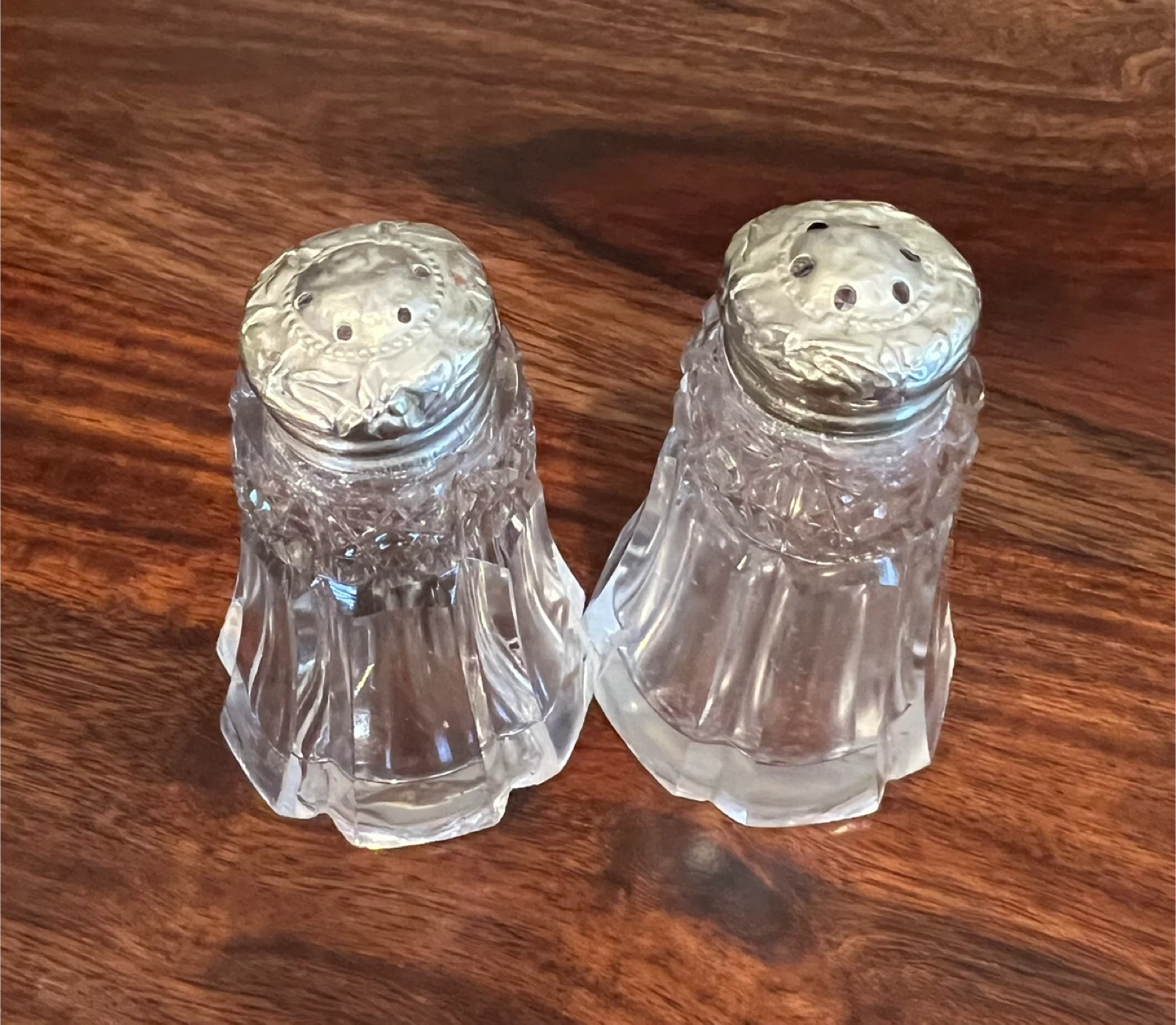 Vintage Crystal and Silver-Tone Salt and Pepper Shakers