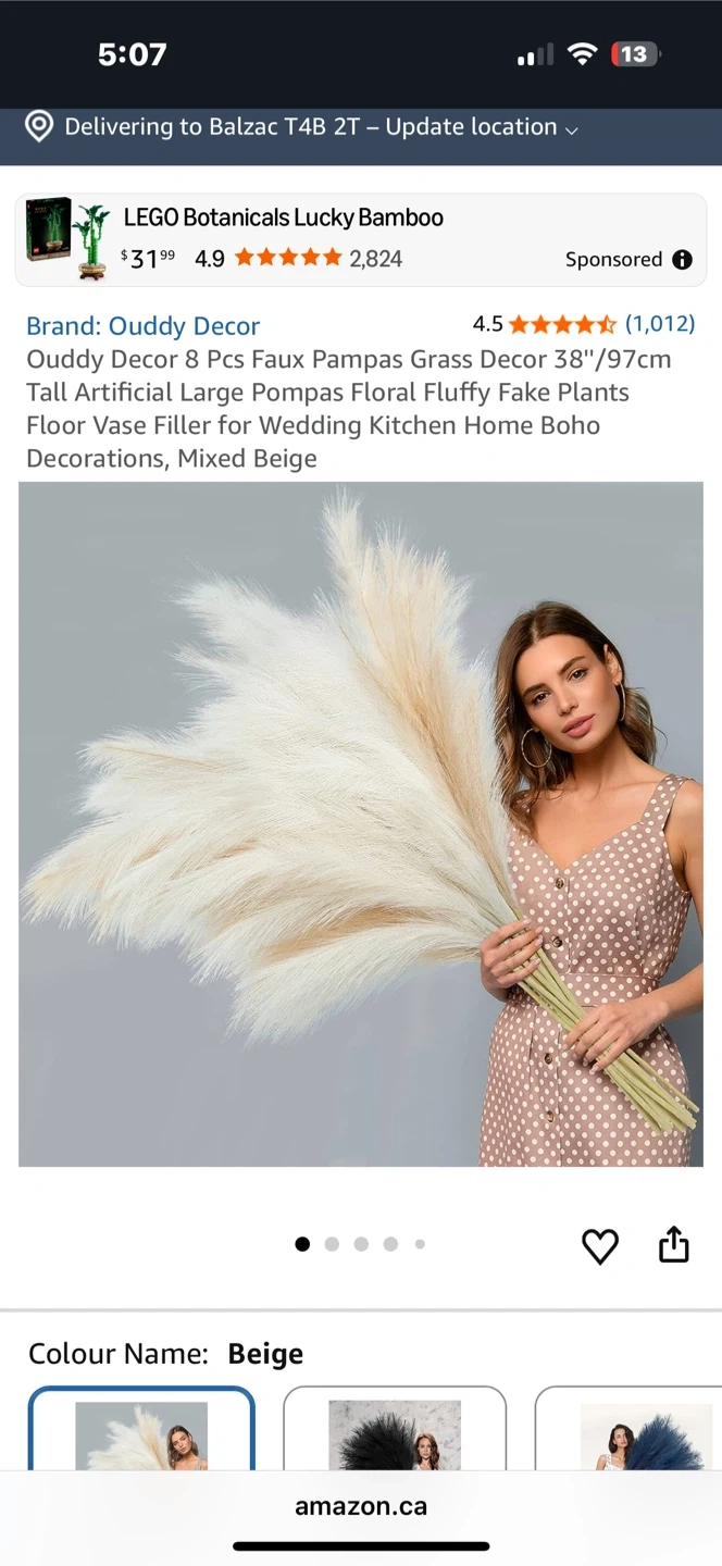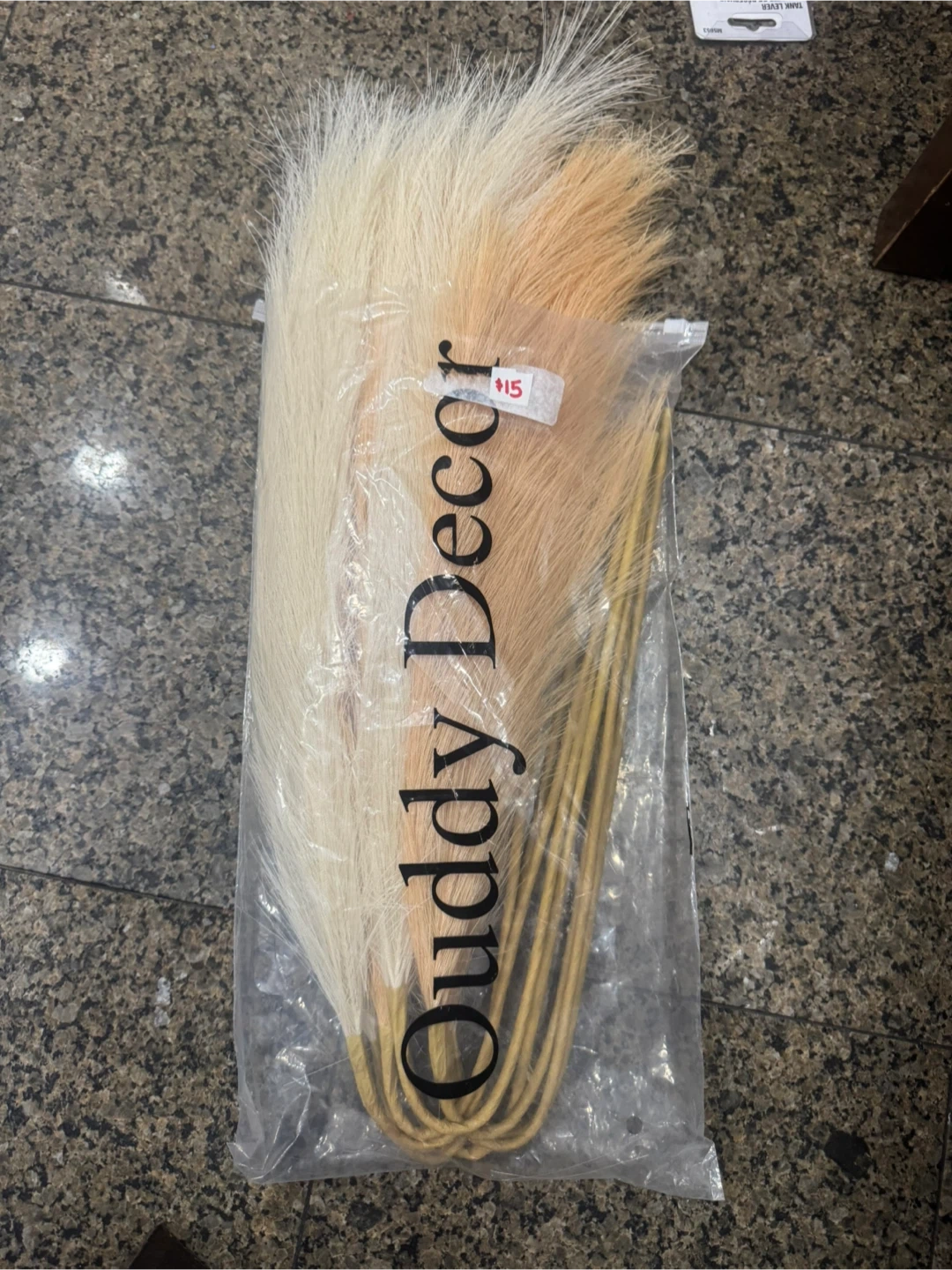 These are 8 pcs of faux pampas grass decor. The stems can be bent to fit smaller vases. They're fluffy and measure 38"/97cm tall.