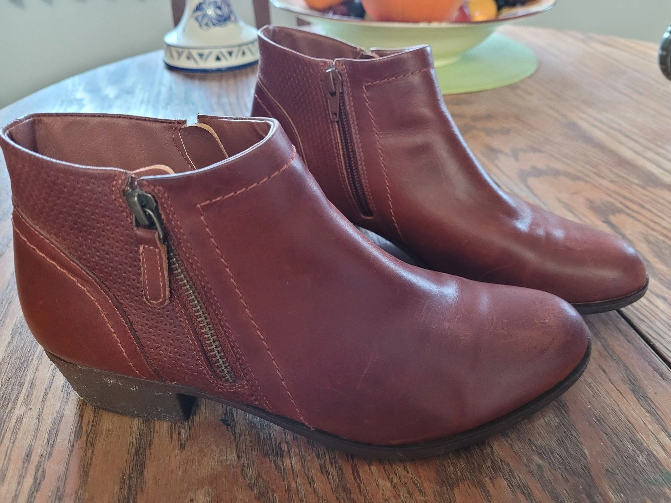 These brown leather ankle boots are in great condition and ready for a new home! They feature a stylish side zipper detail. Perfect for adding a touch of sophistication to any outfit
