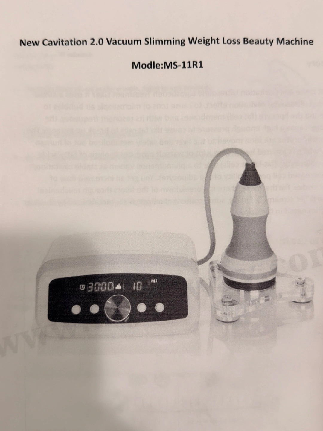 This machine is designed for slimming and weight loss. It features a vacuum cavitation system. The model is MS-11R1.