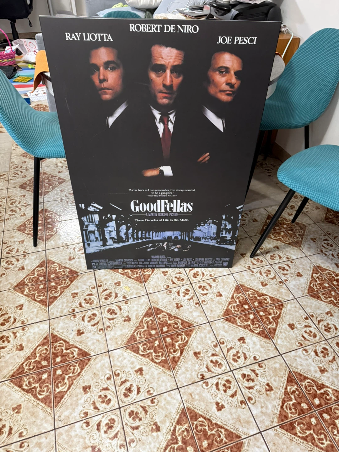 This is a movie poster for GoodFellas. It features the main actors Robert De Niro, Ray Liotta, and Joe Pesci. The poster highlights the film's iconic imagery and quotes. It's a Warner Bros. picture.