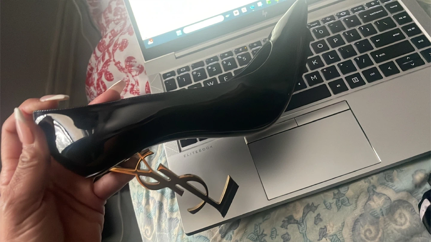Saint Laurent Opium Heels Pumps Black Patent Leather Size 39