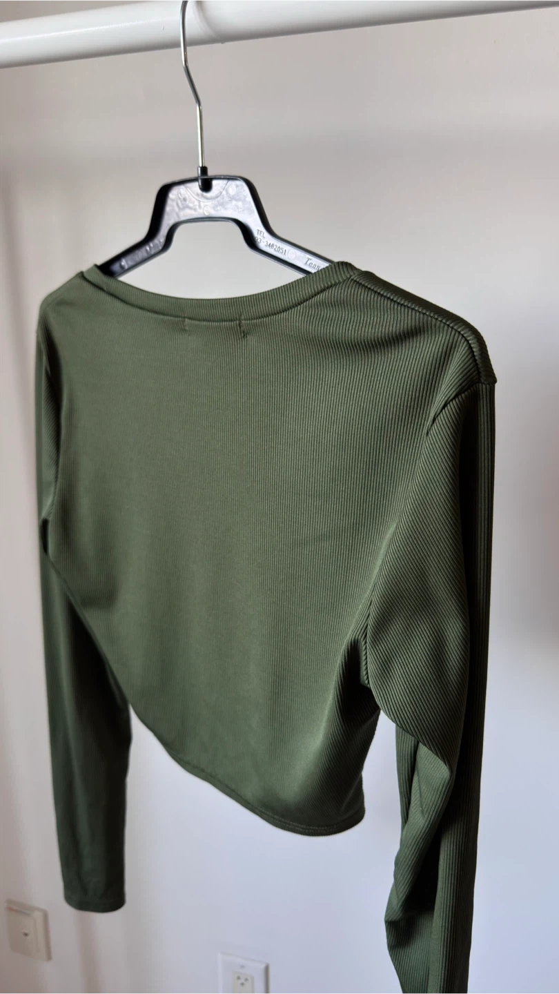 SHEIN Olive Ribbed Cropped Long Sleeve Top